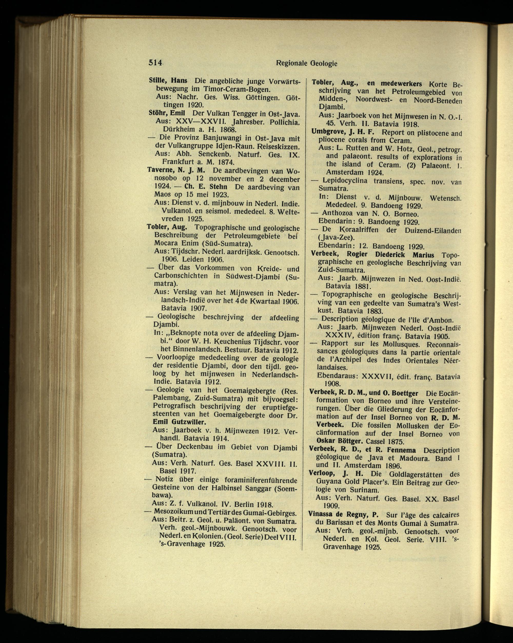 Vinassa de Regny, P. Sur l’âge des calcaires du Barissan et des Monts Gumai à Sumatra. Aus: Verh. geol.-mijnb. Genootsch. voor Nederl. en Kol. Geol. Serie. VIII. ’ s ' Gravenhage 1925.