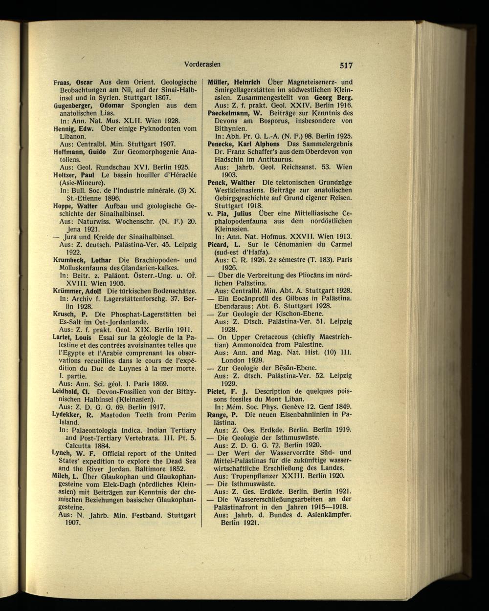 Fraas, Oscar Aus dem Orient. Geologische Beobachtungen am Nil, auf der Sinai-Halbinsel und in Syrien. Stuttgart 1867. Gugenberger, Odomar Spongien aus dem anatolischen Lias.