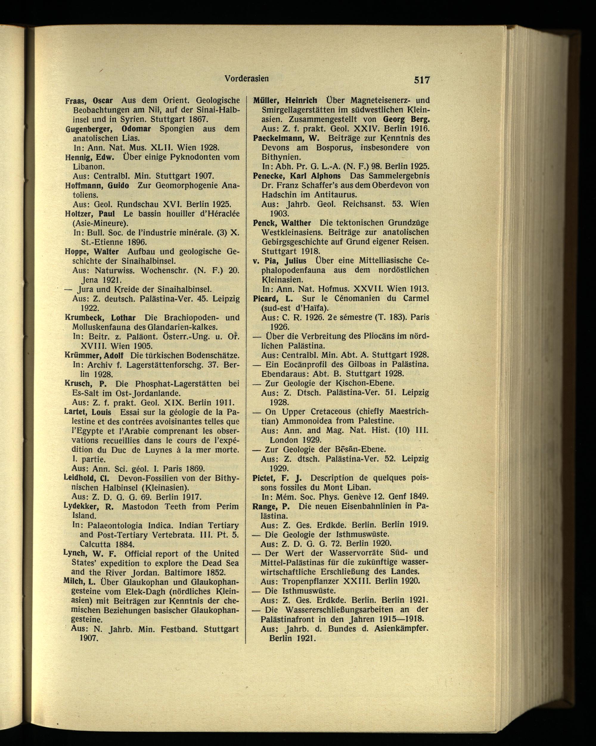 Müller, Heinrich Über Magneteisenerz- und Smirgellagerstätten im südwestlichen Klein asien . Zusammengestellt von Georg Berg. Aus: Z. f. prakt. Geol. XXIV. Berlin 1916. Paeckelmann, W. Beiträge zur Kenntnis des Devons am Bosporus , insbesondere von Bithynien .