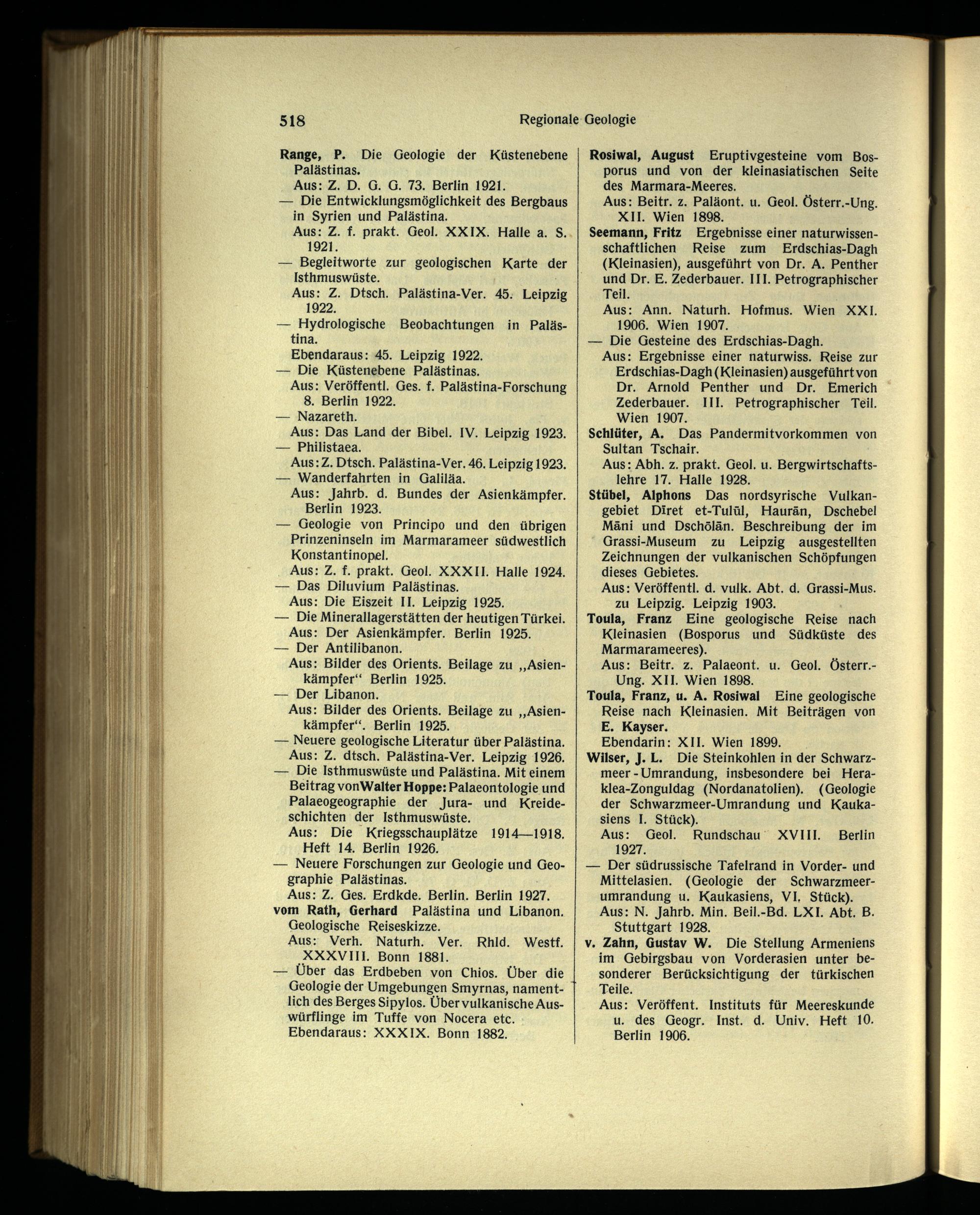 — Neuere geologische Literatur über Palästina. Aus: Z. dtsch. Palästina-Ver. Leipzig 1926.
