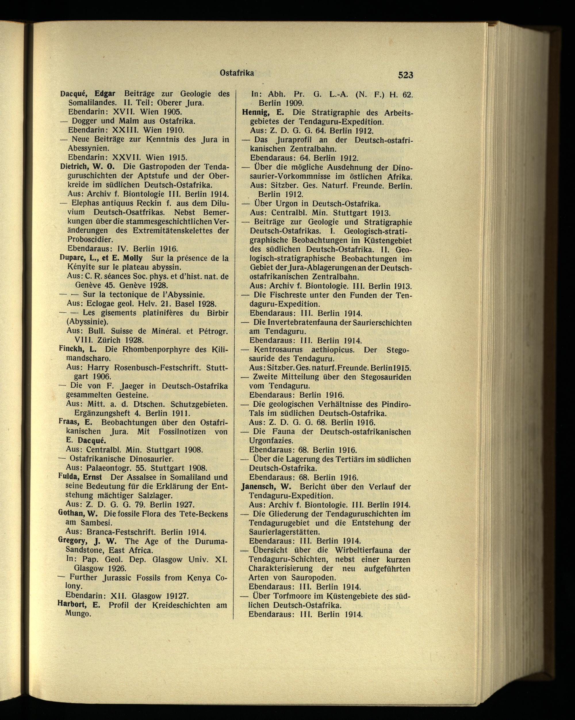 Fraas , E. Beobachtungen über den Ostafri kanischen Jura . Mit Fossilnotizen von E. Dacqué.