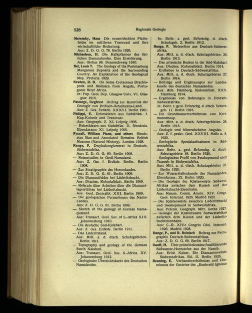 Range, P., und R. Reinisch Beitrag zur Petrographie Deutsch -Südwestafrikas.