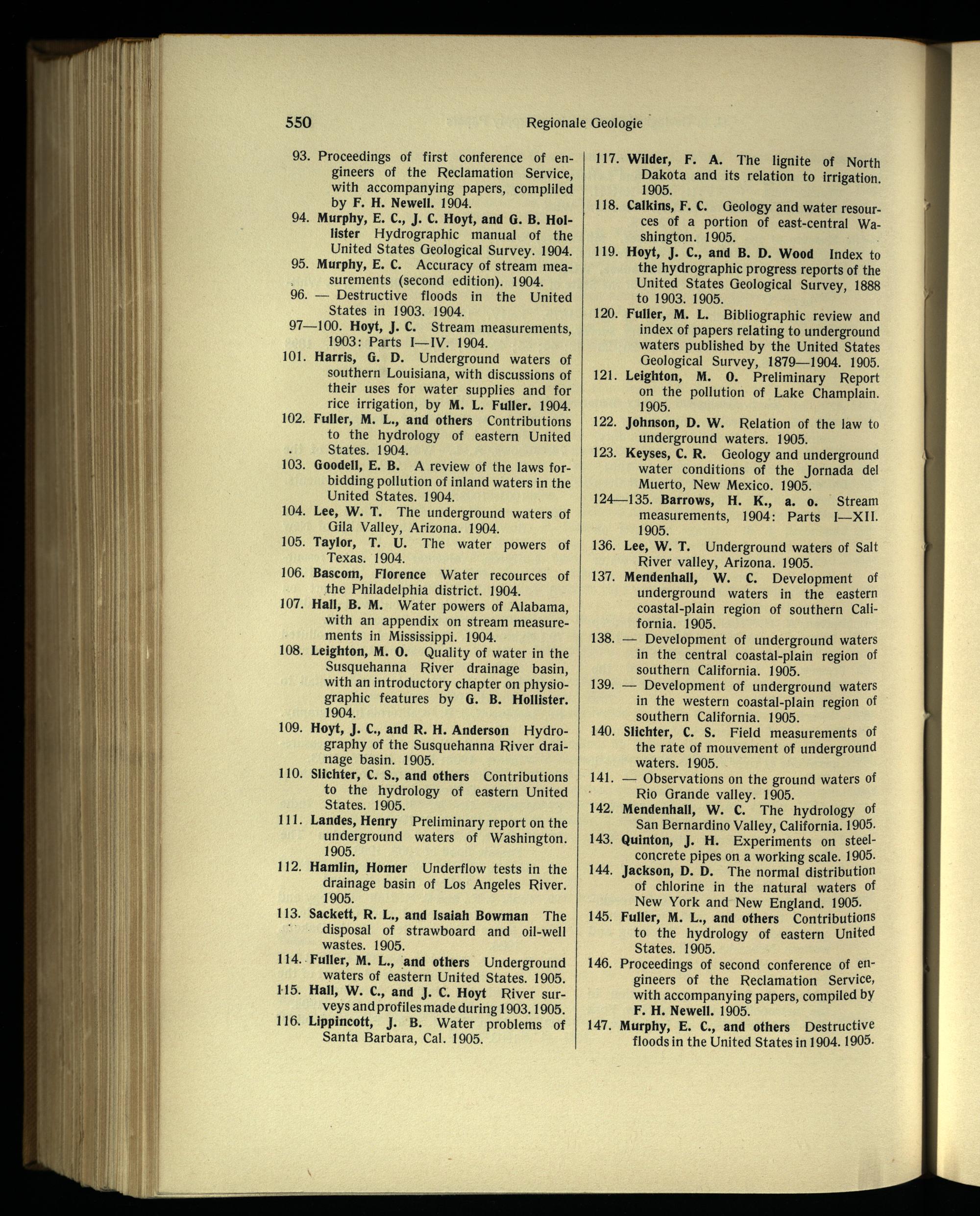 124—135. Barrows, H. K., a. o. Stream measurements, 1904: Parts I—XII. 1905.