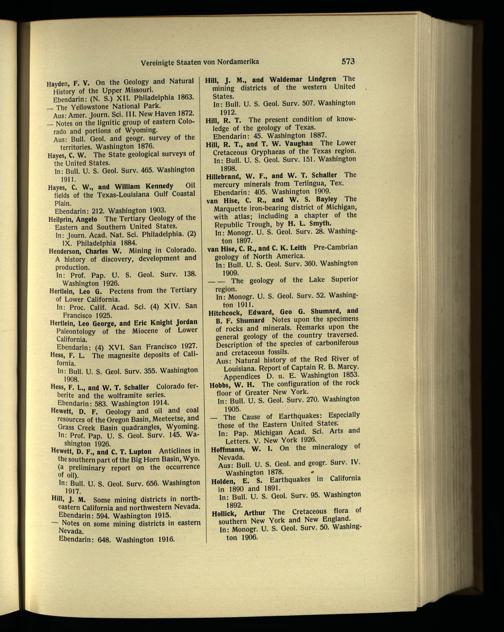 Hillebrand, W. F., and W. T. Schaller The mercury minerals from Terlingua , Tex. Ebendarin: 405. Washington 1909. van Hise , C. R., and W. S. Bayley The Marquette iron-bearing district of Michigan, with atlas; including a chapter of the Republic Trough, by H. L. Smyth.