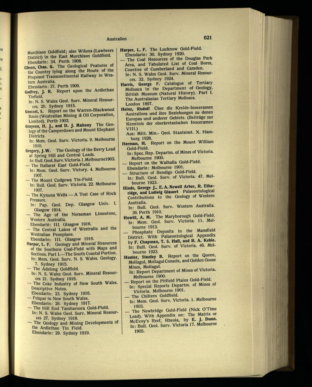 Harper, L. F. The Lucknow Gold-Field. Ebendann: 30. Sydney 1920.
