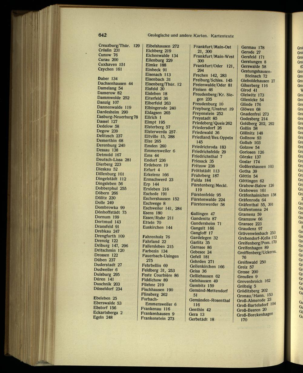 Greifswald 250 Greiz 57 Gresse 200 Greußen 9 Grevenbroich 162 Gröbzig 5 Gröditzberg 202 Gronau/Hann. 153 Groß-Almerode 23 Groß-Bartelsdorf l U4 Groß-Beeren 20