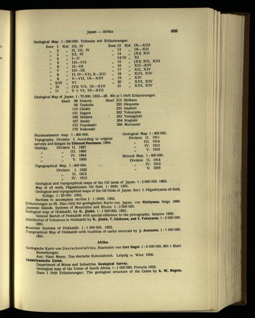 Topography. Division I. According to original surveys and designs by Edmund Naumann. 1884. Geology. Division II. 1887 „ „ III. 1890