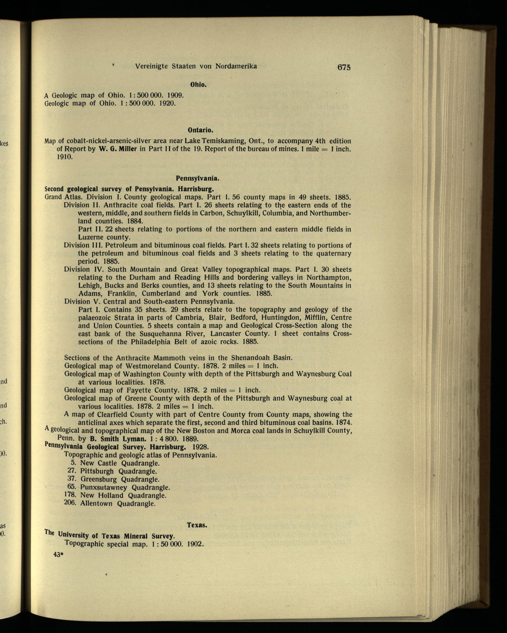 Division III. Petroleum and bituminous coal fields. Part 1.32 sheets relating to portions of the petroleum and bituminous coal fields and 3 sheets relating to the quaternary period. 1885.