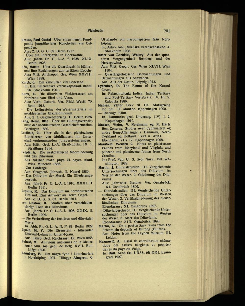 Lepslus, R. Das Diluvium im norddeutschen Tiefland. Eine Antwort an Herrn Gagel. Aus: Z. D. G. G. 63. Berlin 1911. von Llnstow, 0. Studien über verschieden- altrige Tone des Diluviums.