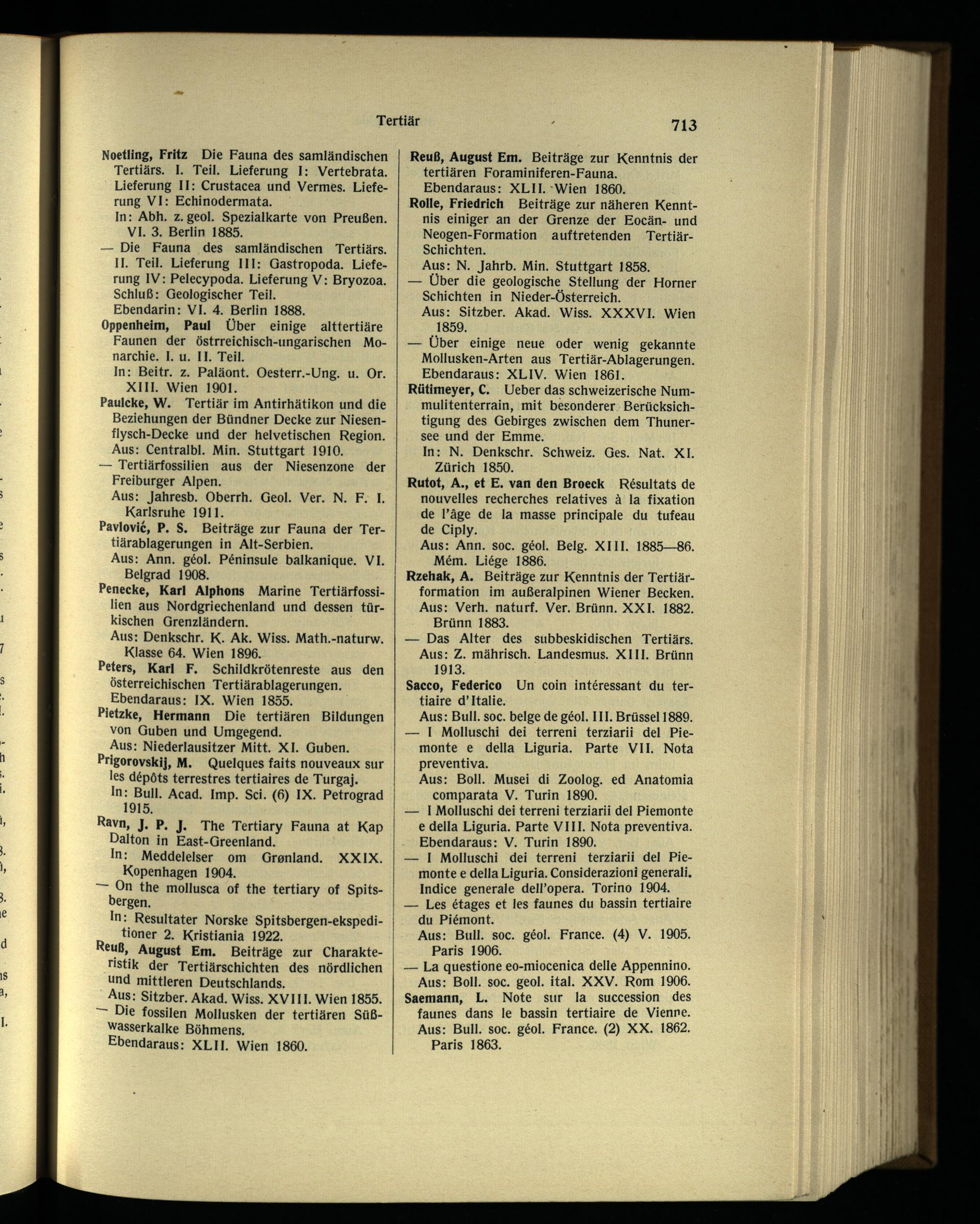 Saemann, L. Note sur la succession des faunes dans le bassin tertiaire de Vienne. Aus: Bull. soc. géol. France. (2) XX. 1862. Paris 1863.