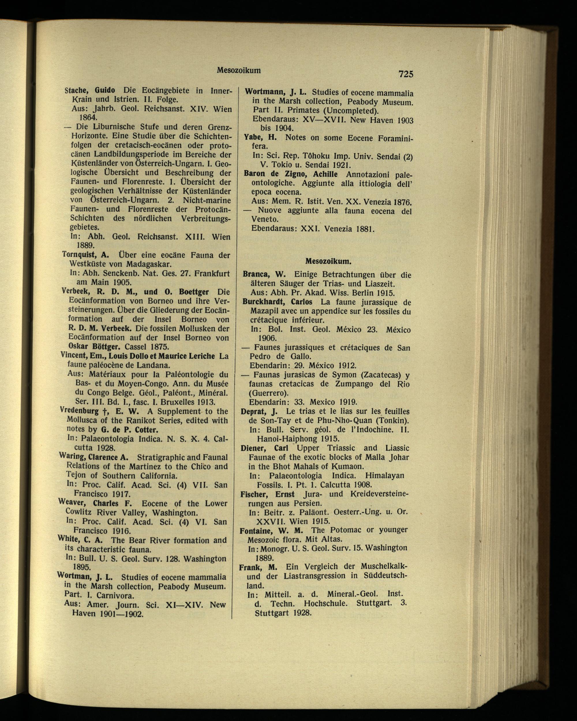 Wortmann, J. L. Studies of eocene mammalia in the Marsh collection, Peabody Museum . Part II. Primates (Uncompleted). Ebendaraus: XV—XVII. New Haven 1903 bis 1904.