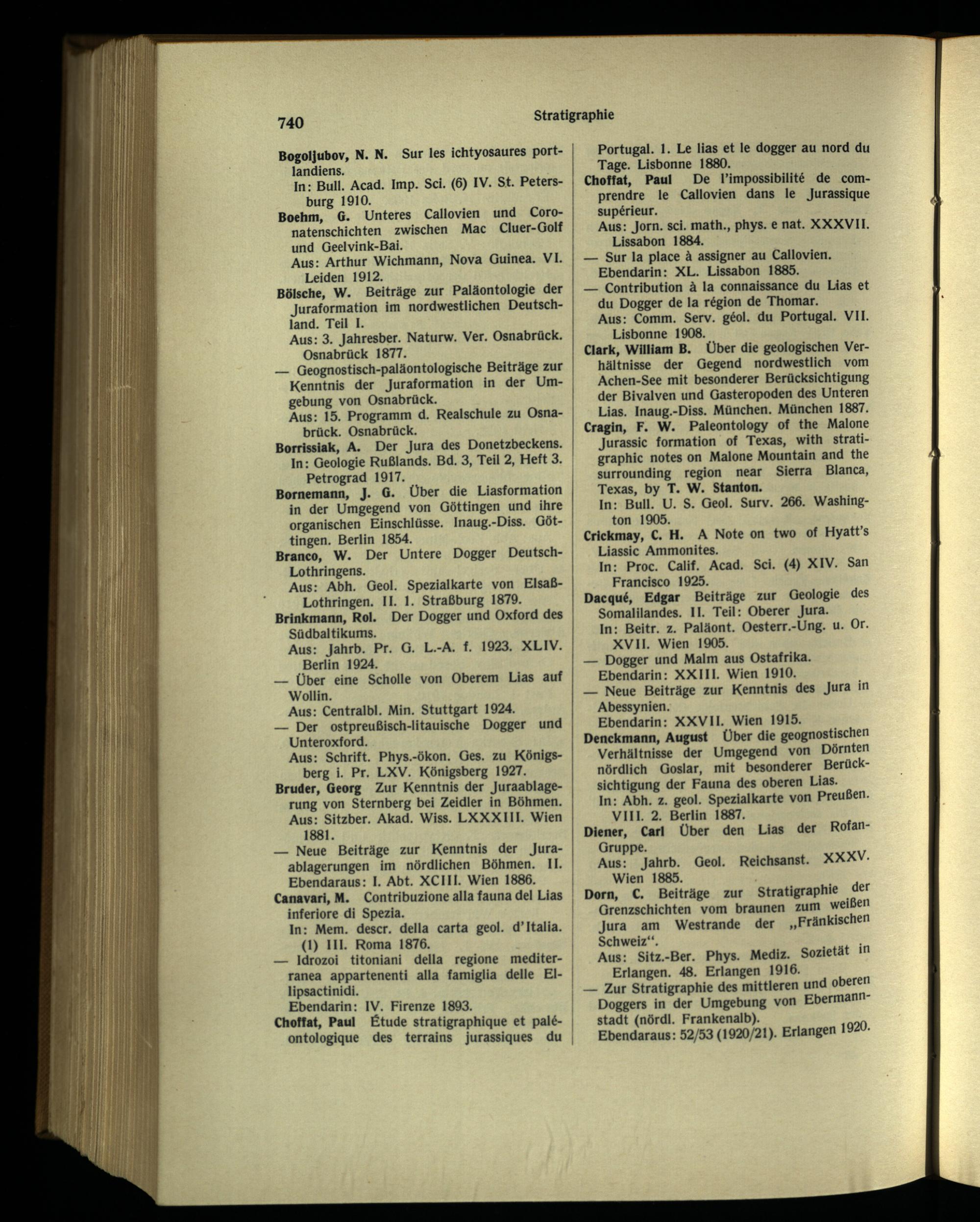 Clark, William B. Über die geologischen Verhältnisse der Gegend nordwestlich vom Achen-See mit besonderer Berücksichtigung der Bivalven und Gasteropoden des Unteren Lias. Inaug.-Diss. München . München 1887. Cragln, F. W. Paleontology of the Malone Jurassic formation of Texas, with stratigraphic notes on Malone Mountain and the surrounding region near Sierra Blanca, Texas , by T. W. Stanton.