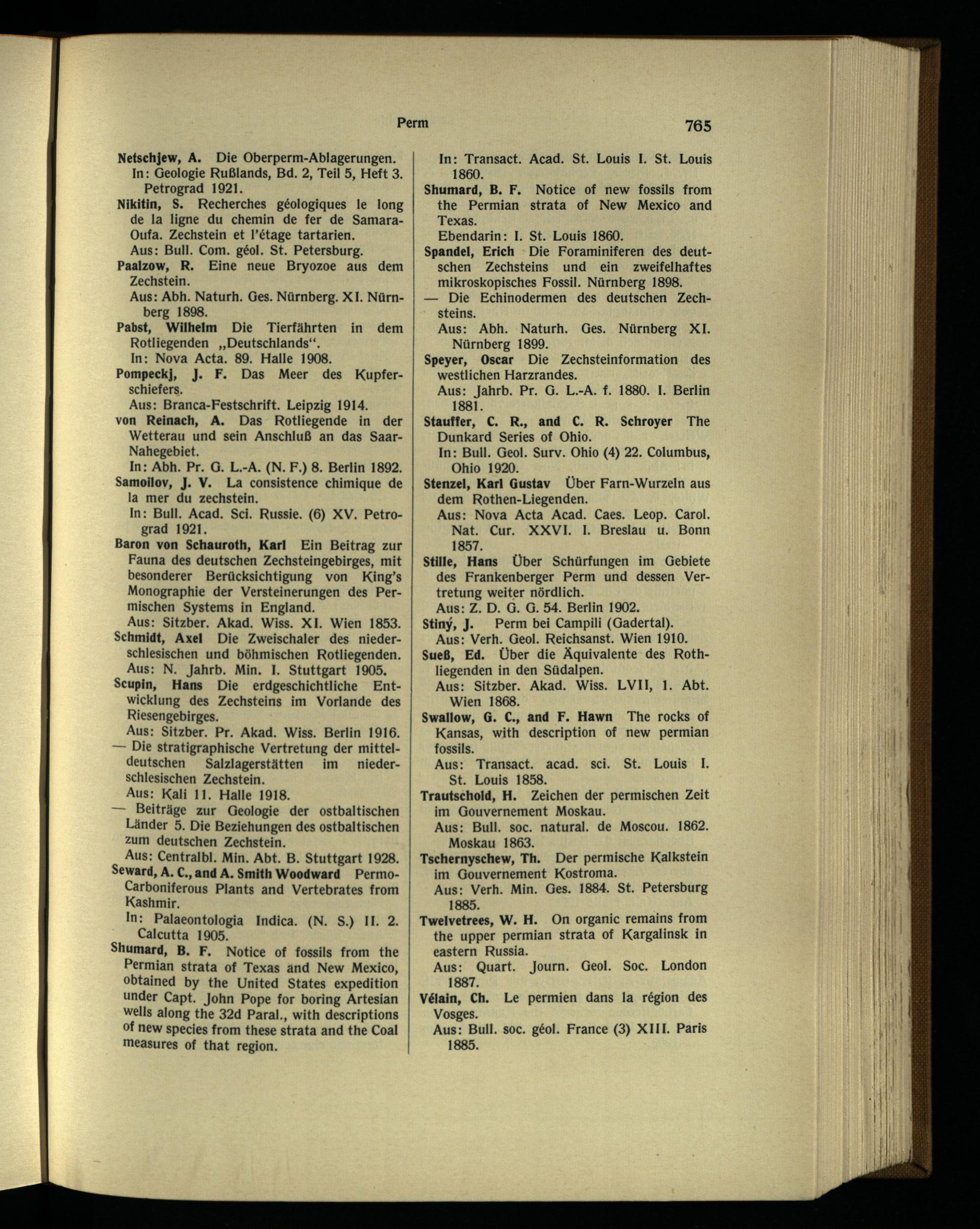 Netschjew, A. Die Oberperm-Ablagerungen. In : Geologie Rußlands , Bd. 2, Teil 5, Heft 3. Petrograd 1921.