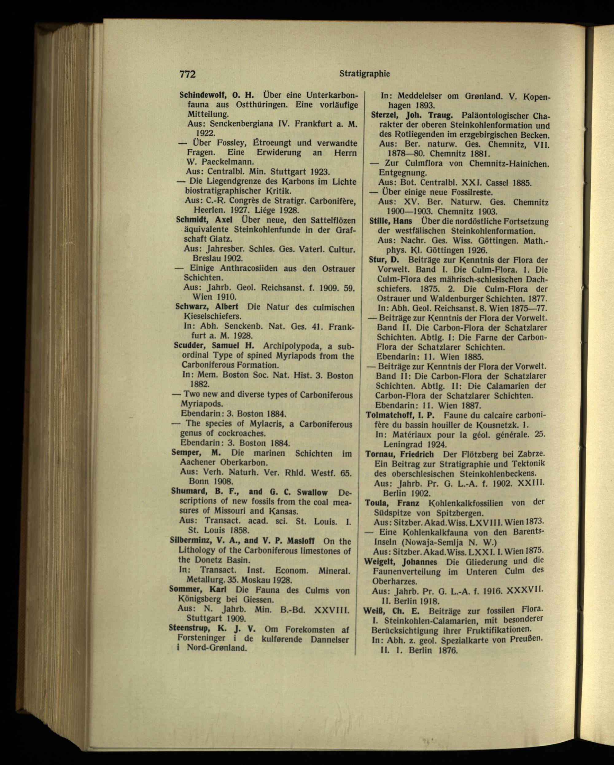 Sterzei, Joh. Traug. Paläontologischer Charakter der oberen Steinkohlenformation und des Rotliegenden im erzgebirgischen Becken. Aus: Ber. naturw. Ges. Chemnitz, VII. 1878—80. Chemnitz 1881.