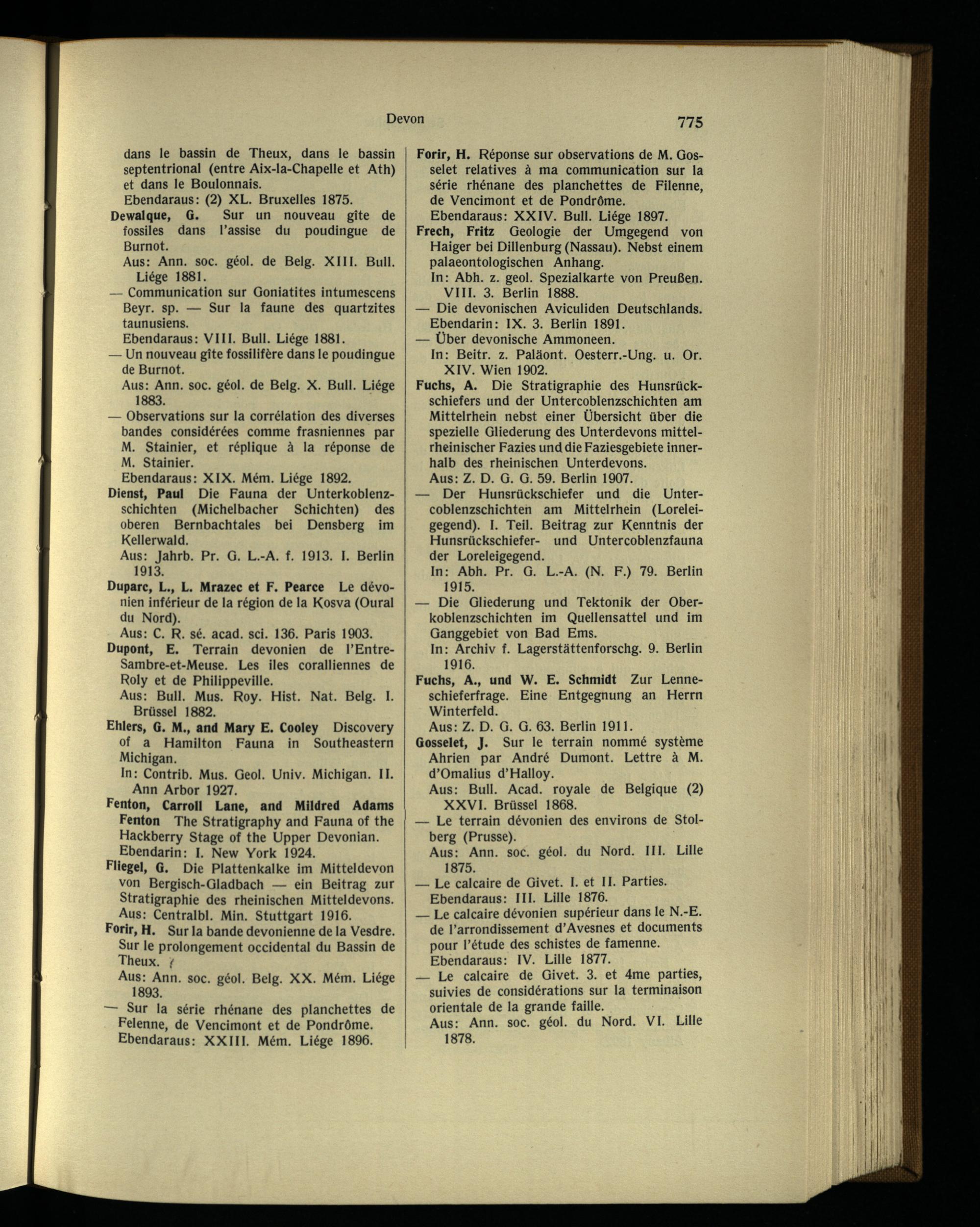 — Sur la série rhénane des planchettes de Felenne, de Vencimont et de Pondrôme. Ebendaraus: XXIII. Mém. Liège 1896.