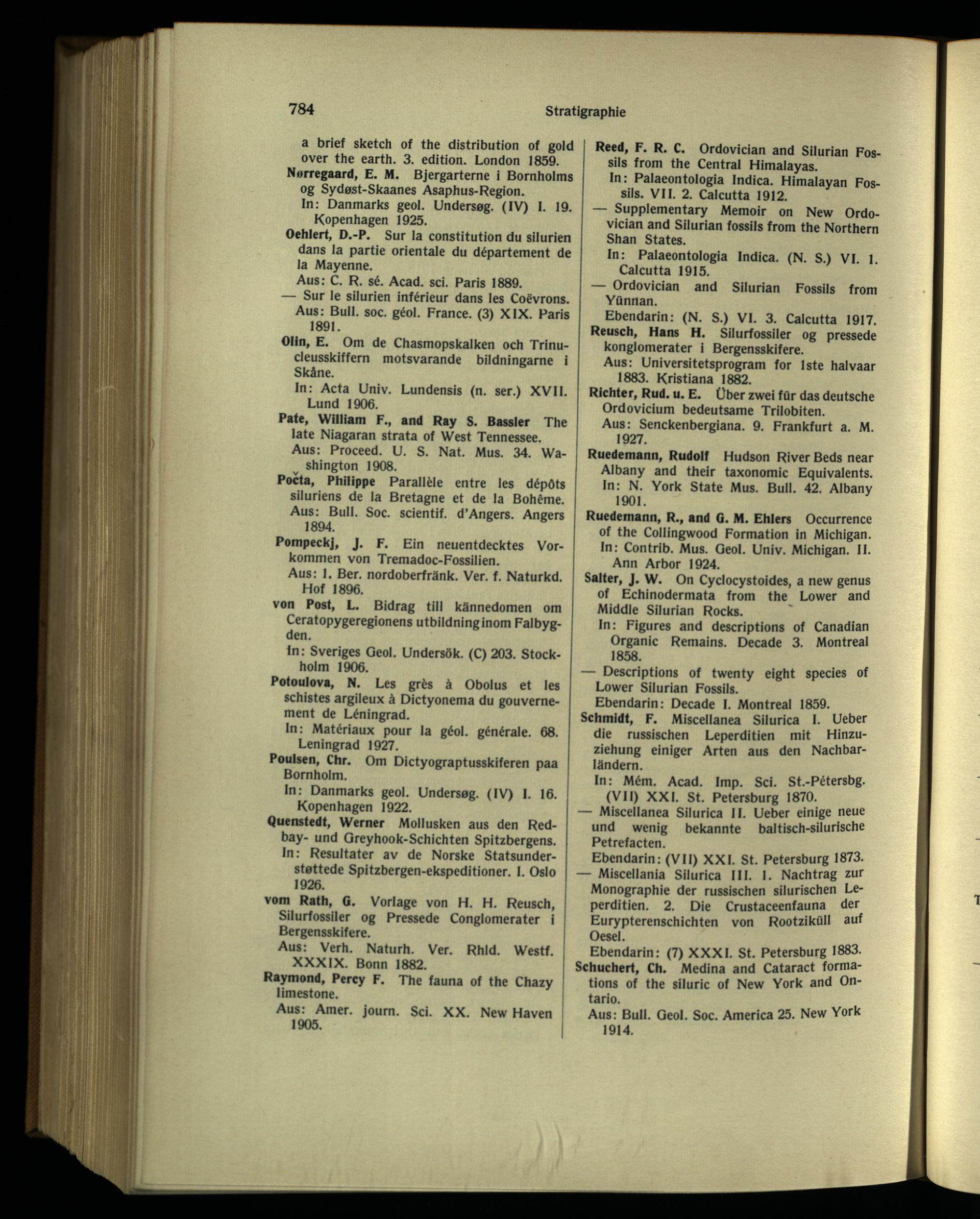 Ebendann: (N. S. ) VI. 3. Calcutta 1917. Reusch, Hans H. Silurfossiler og pressede konglomerater i Bergensskifere.