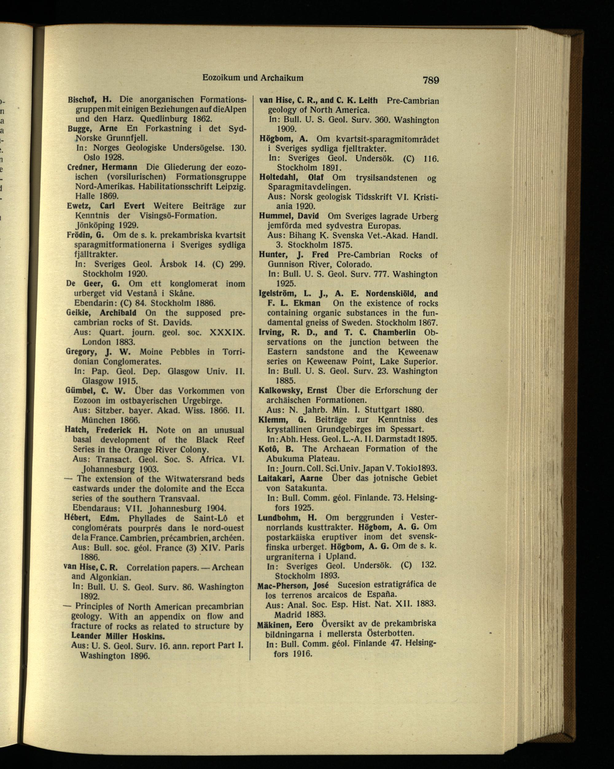 Igelström, L. J., A. E. Nordenskiöld, and F. L. Ekman On the existence of rocks containing organic substances in the fundamental gneiss of Sweden. Stockholm 1867. Irving, R. D., and T. C. Chamberlin Observations on the junction between the Eastern sandstone and the Keweenaw series on Keweenaw Point, Lake Superior. In: Bull. U. S. Geol. Surv. 23. Washington 1885.