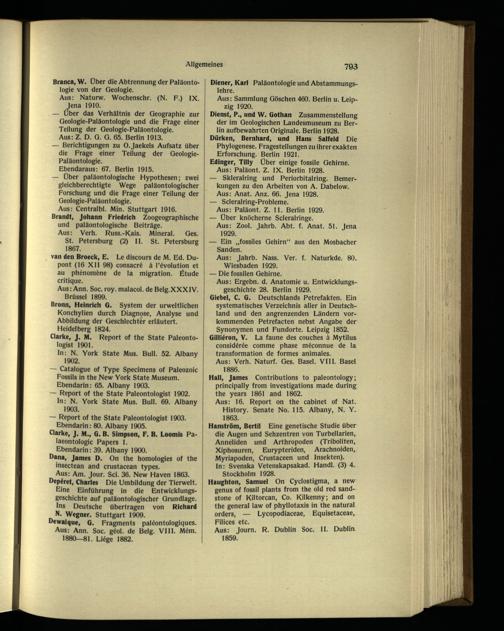 Dienst, P., und W. Gothan Zusammenstellung der im Geologischen Landesmuseum zu Ber lin aufbewahrten Originale. Berlin 1928. Dürken, Bernhard , und Hans Salfeld Die Phylogenese. Fragestellungen zu ihrer exakten Erforschung. Berlin 1921.