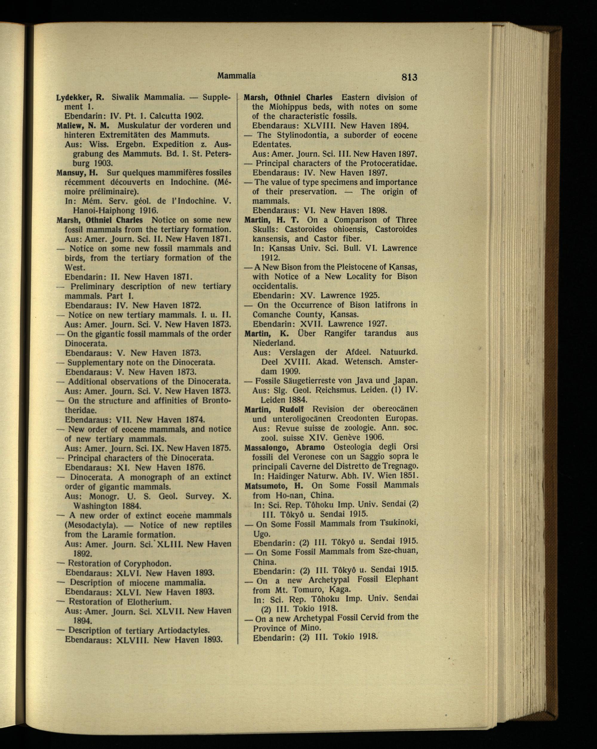 Martin, Rudolf Revision der obereoeänen und unteroligoeänen Creodonten Europas. Aus: Revue suisse de zoologie. Ann. soc. zool. suisse XIV. Genève 1906. Massalongo, Abramo Osteología degli Orsi fossili del Veronese con un Saggio sopra le principali Caverne del Distretto deTregnago. In: Haidinger Naturw. Abh. IV. Wien 1851. Matsumoto, H. On Some Fossil Mammals from Ho-nan , China .
