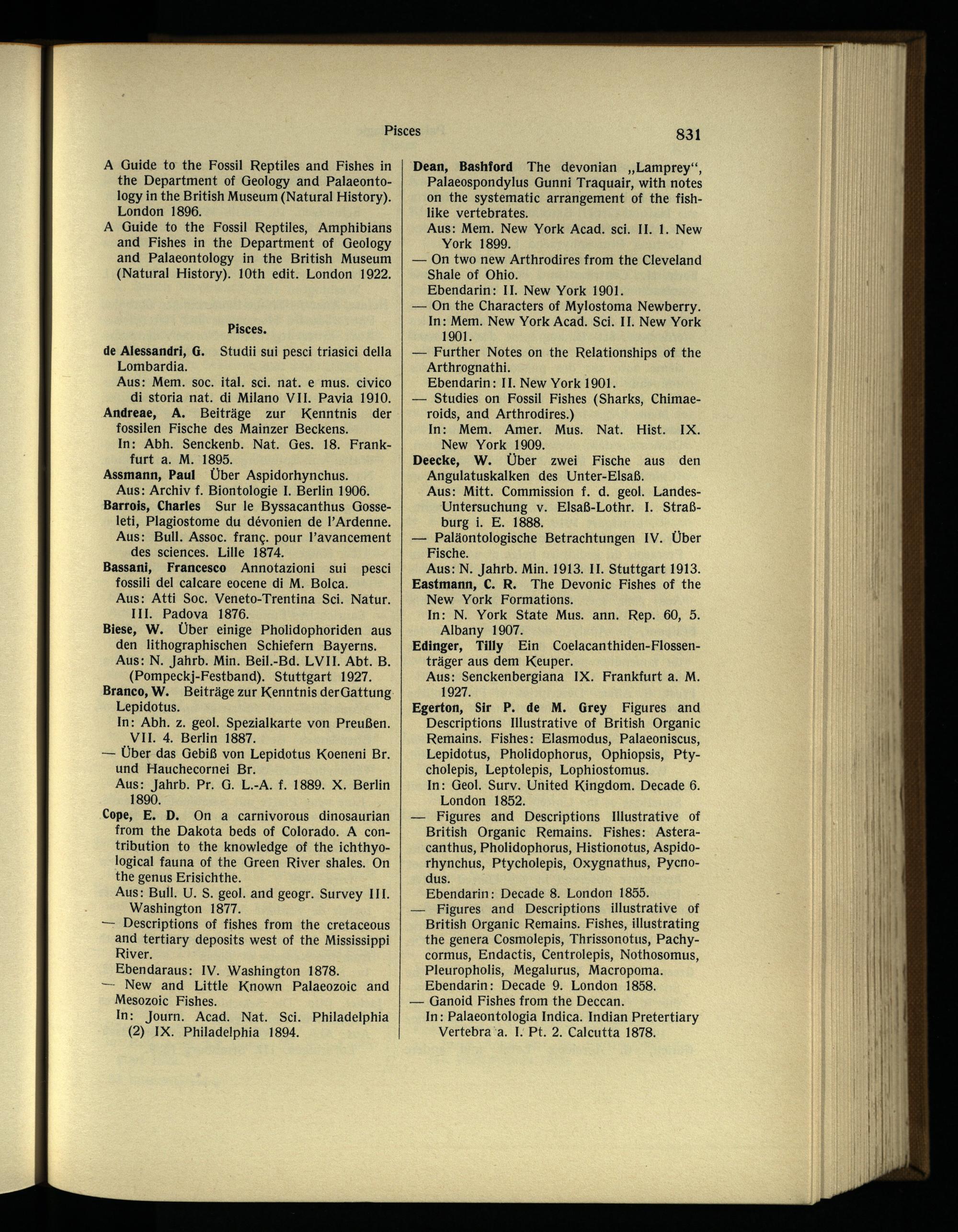 Biese, W. Über einige Pholidophoriden aus den lithographischen Schiefern Bayerns. Aus: N. Jahrb. Min. Beil.-Bd. LV1I. Abt. B. (Pompeckj-Festband). Stuttgart 1927. Branco, W. Beiträge zur Kenntnis derGattung Lepidotus.