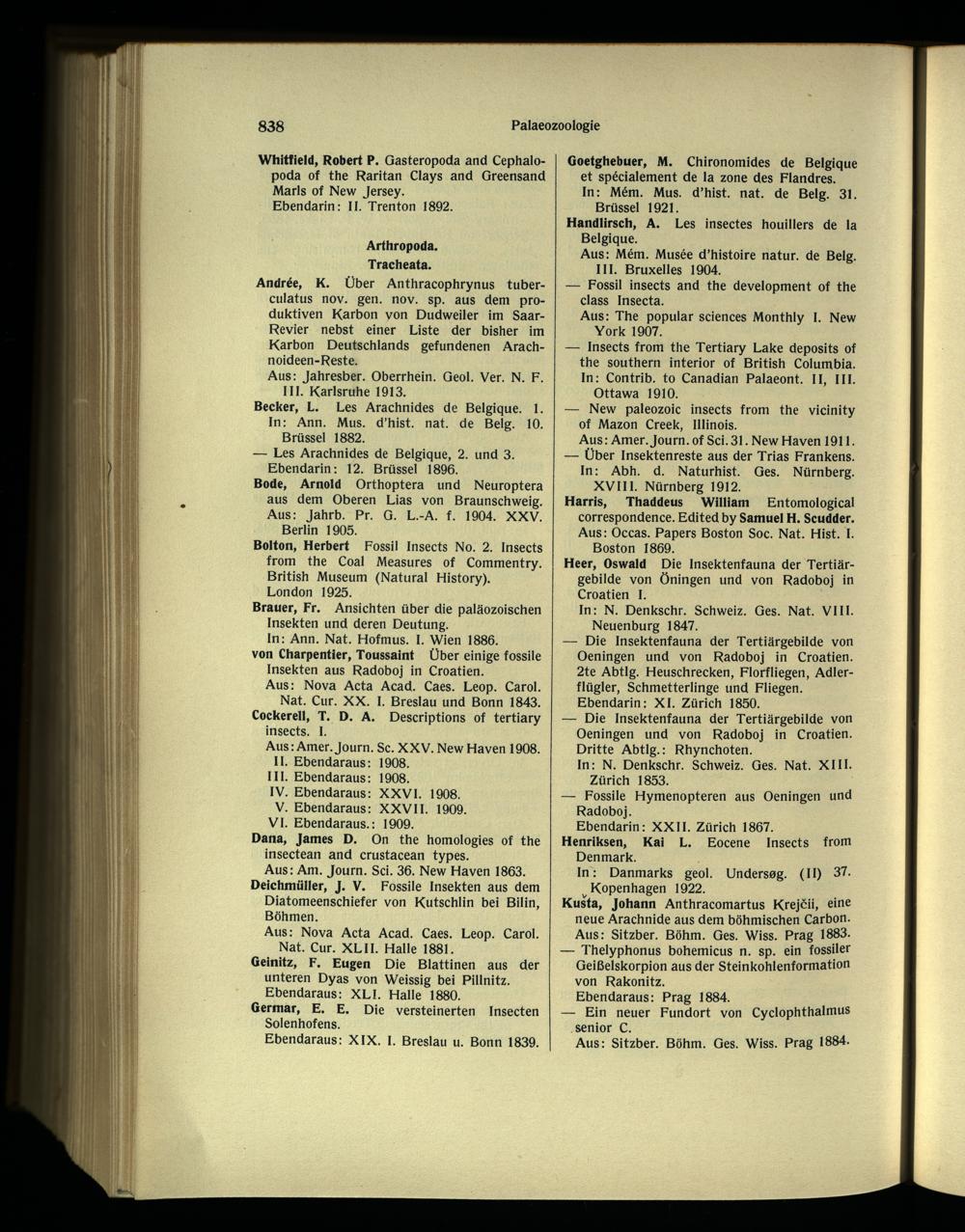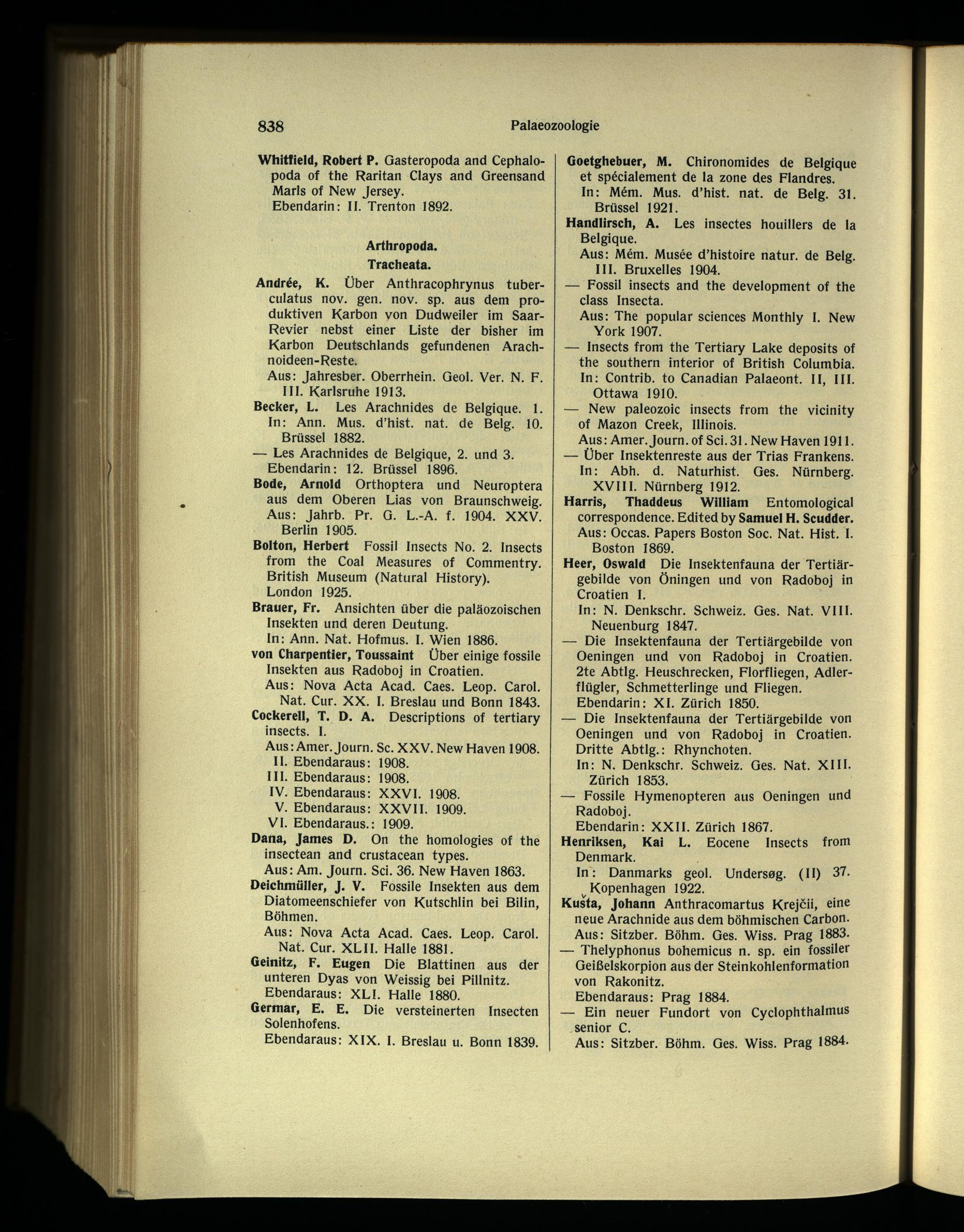 Aus: Am. Journ. Sei. 36. New Haven 1863. Deichmüller, J. V. Fossile Insekten aus dem Diatomeenschiefer von Kutschlin bei Bilin , Böhmen .