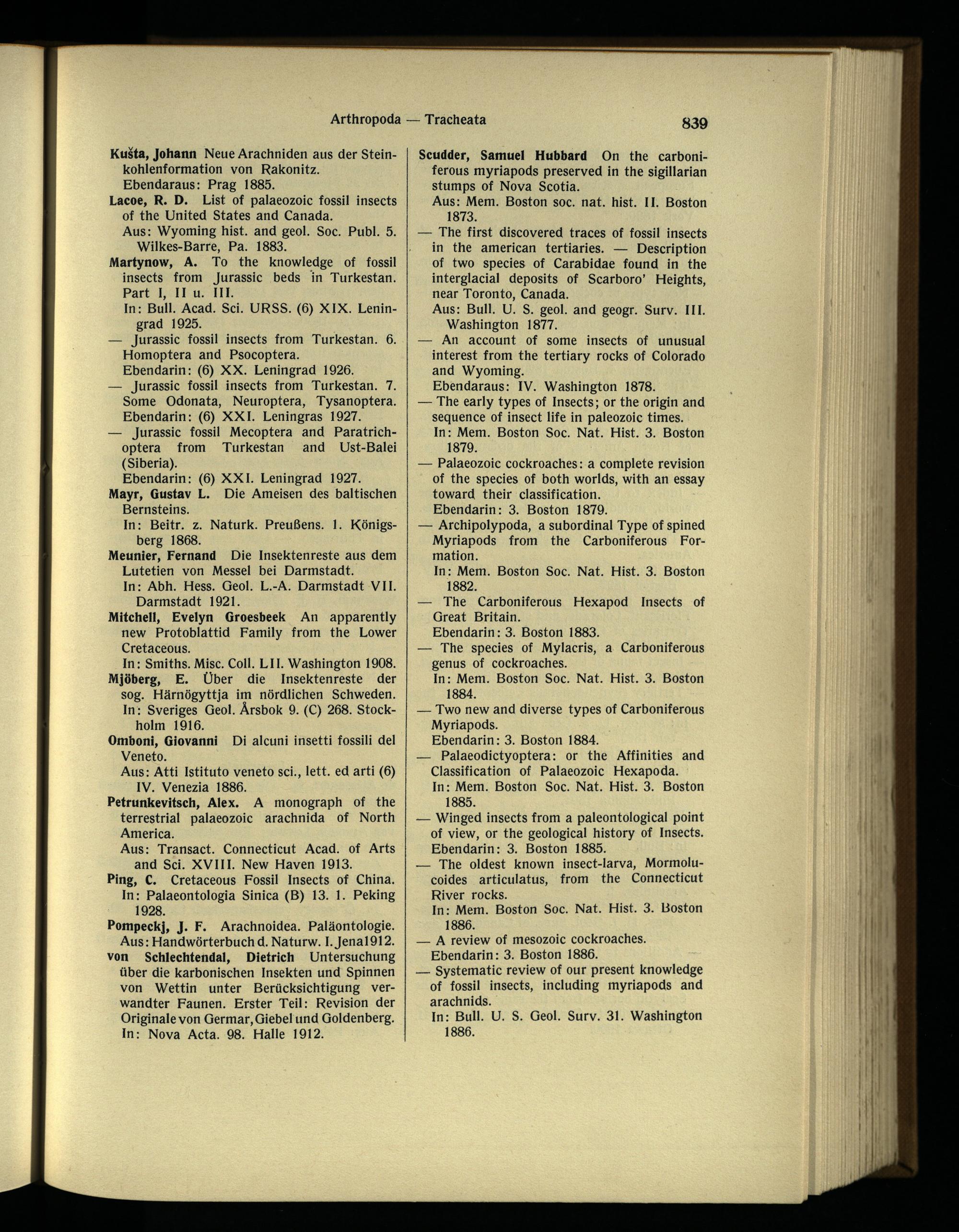 — A review of mesozoic cockroaches. Ebendann: 3. Boston 1886.