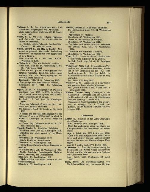 — A classed and annotated Bibliography of the paleozoic Crustacea 1698—1892 to which is added a Catalogue of North American species.