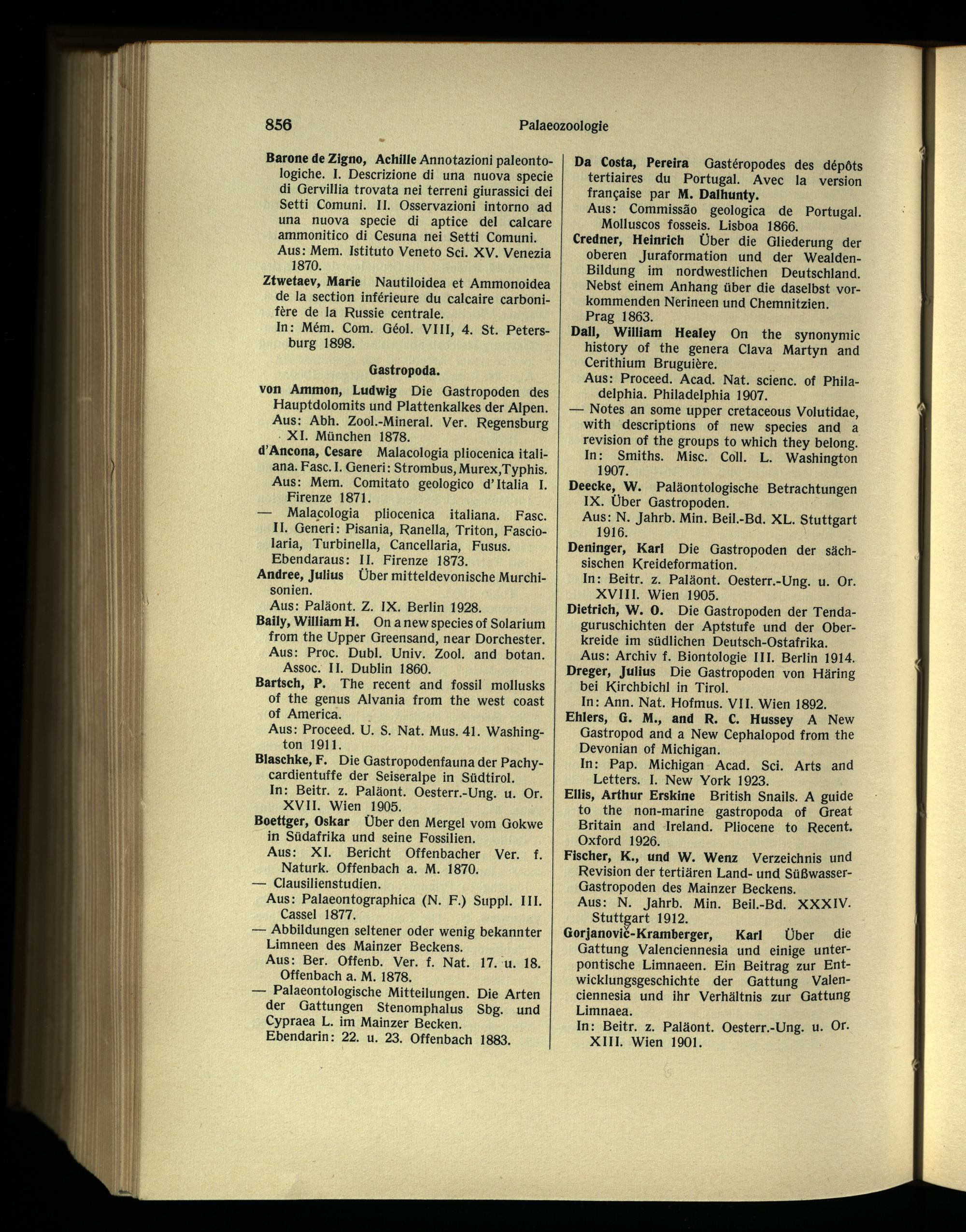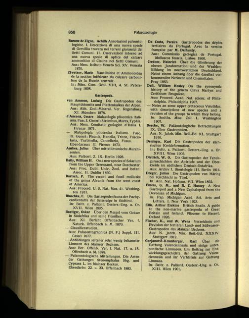 von Ammon, Ludwig Die Gastropoden des Hauptdolomits und Plattenkalkes der Alpen . Aus: Abh. Zool.-Mineral. Ver. Regensburg XI. München 1878.