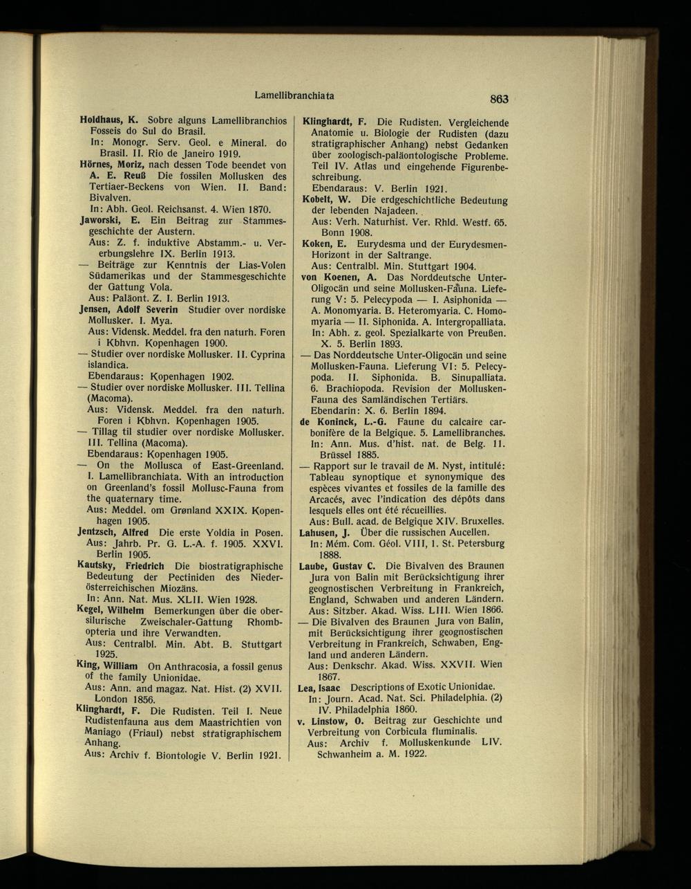 Klinghardt, F. Die Rudisten. Teil I. Neue Rudistenfauna aus dem Maastrichtien von Maniago (Friaul ) nebst stfatigraphischem Anhang.