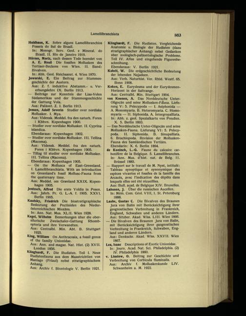 Aus: Centralbl. Min. Stuttgart 1904. von Koenen, A. Das Norddeutsche Unter- Oligocän und seine Mollusken-Fiuna. Lieferung V: 5. Pelecypoda — I. Asiphonida — A. Monomyaria. B. Heteromyaria. C. Homo- myaria— II. Siphonida. A. Intergropalliata. In: Abh. z. geol. Spezialkarte von Preußen. X. 5. Berlin 1893.