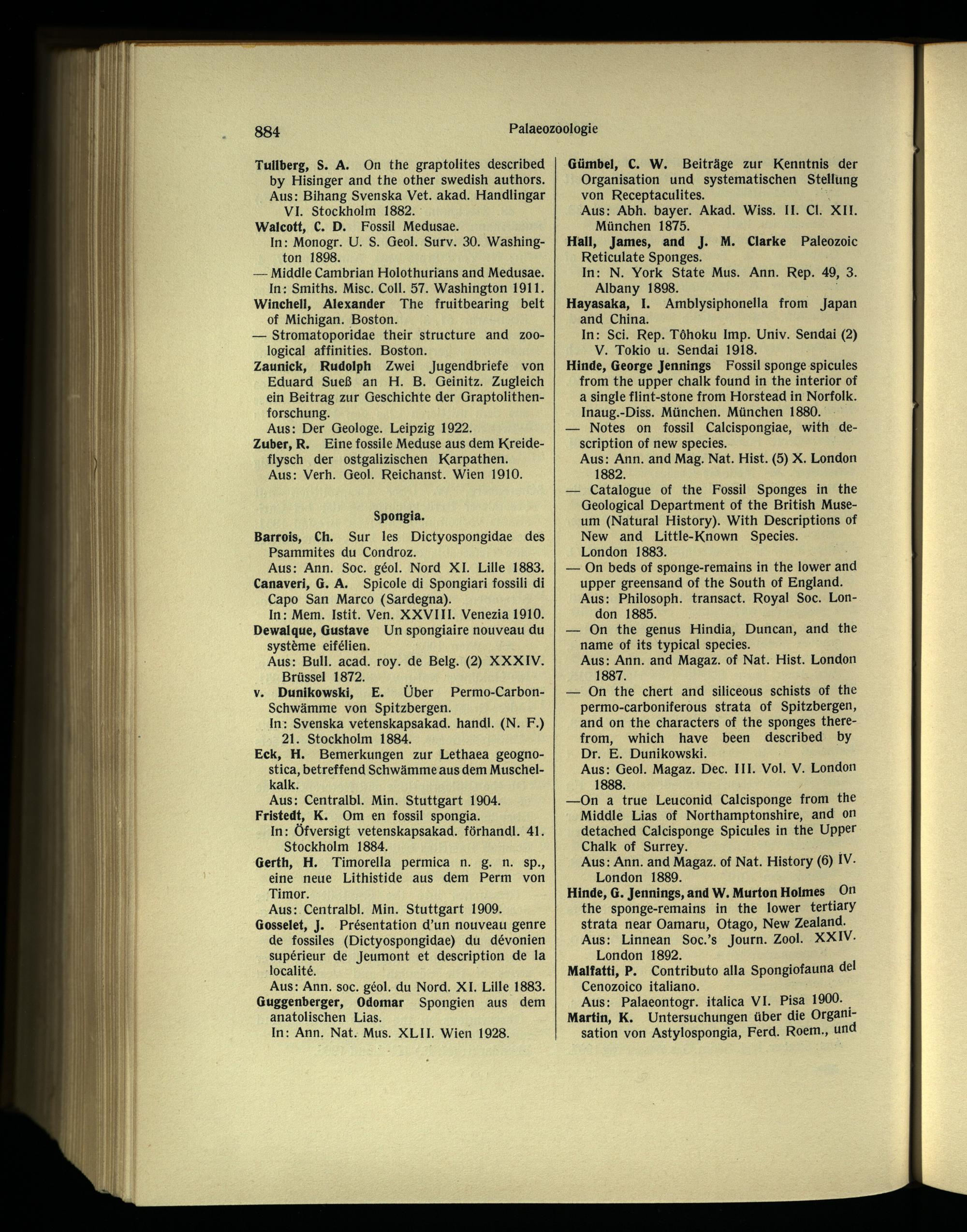 Hinde, G. Jennings , and W. Murtón Holmes On the sponge-remains in the lower tertiary strata near Oamaru , Otago , New Zealand . Aus: Linnean Soc.’s Journ. Zool. XXIV. London 1892.
