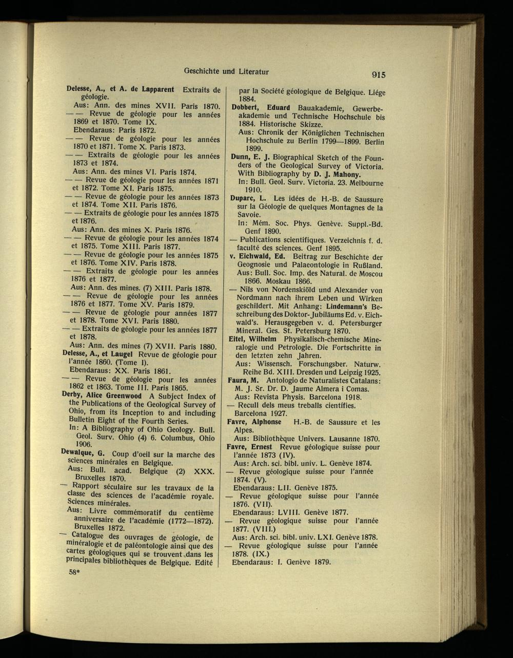 Duparc, L. Les idées de H.-B. de Saussure sur la Géologie de quelques Montagnes de la Savoie .