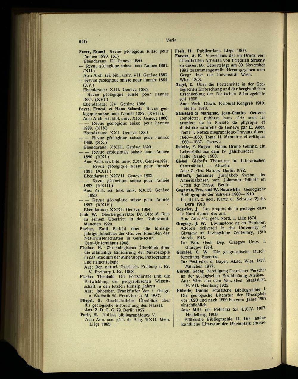 Aus: Arch. sci. bibi. univ. XXV. Genèvel891. - Revue géologique suisse pour lannée