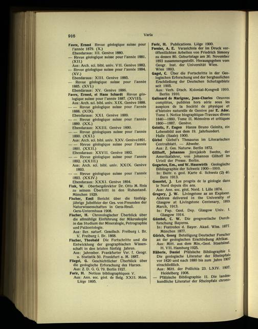 Aus: Jahresber. Frankfurter Ver. f. Geogr. u. Statistik 50. Frankfurt a. M. 1887. Fliegei, G. Geschichtlicher Überblick über die geologische Erforschung des Harzes. Aus: Z. D. G. G. 79. Berlin 1927.