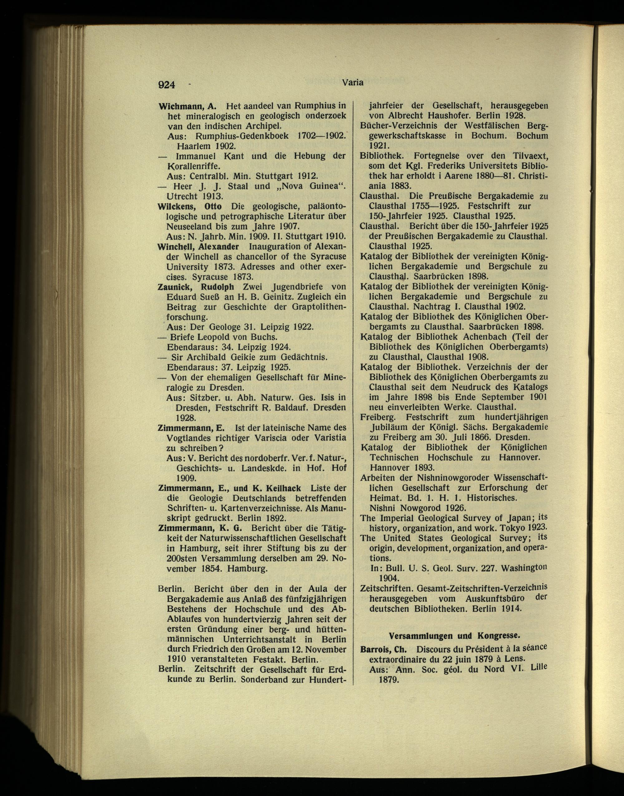 Zimmermann, E., und K. Keilhack Liste der die Geologie Deutschlands betreffenden Schriften- u. Kartenverzeichnisse. Als Manuskript gedruckt. Berlin 1892.
