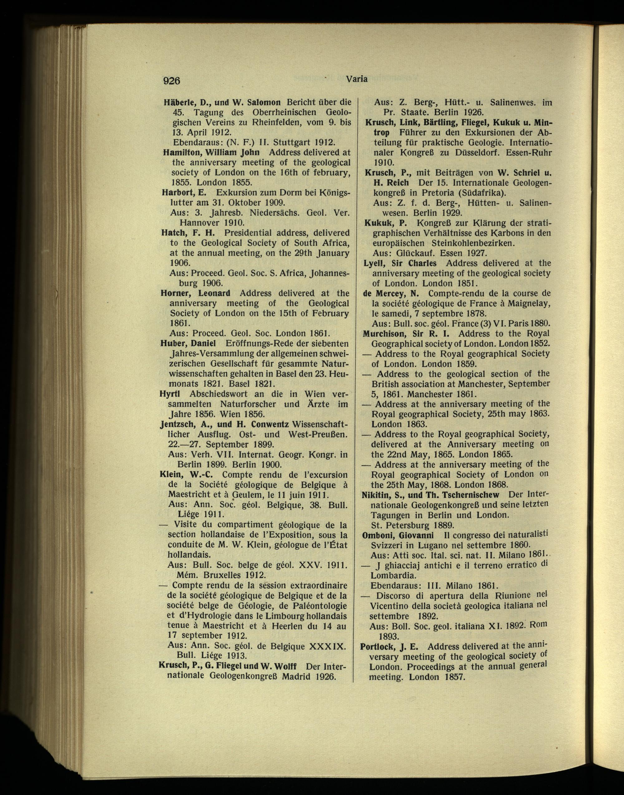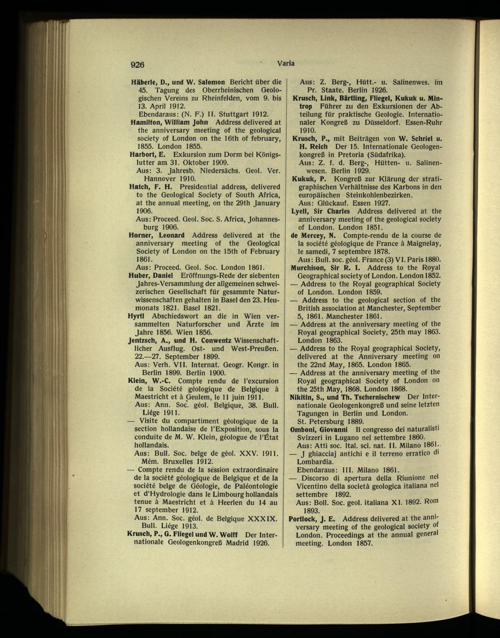 Ebendaraus: (N. F.) II. Stuttgart 1912. Hamilton, William John Address delivered at the anniversary meeting of the geological society of London on the 16th of february , 1855. London 1855.