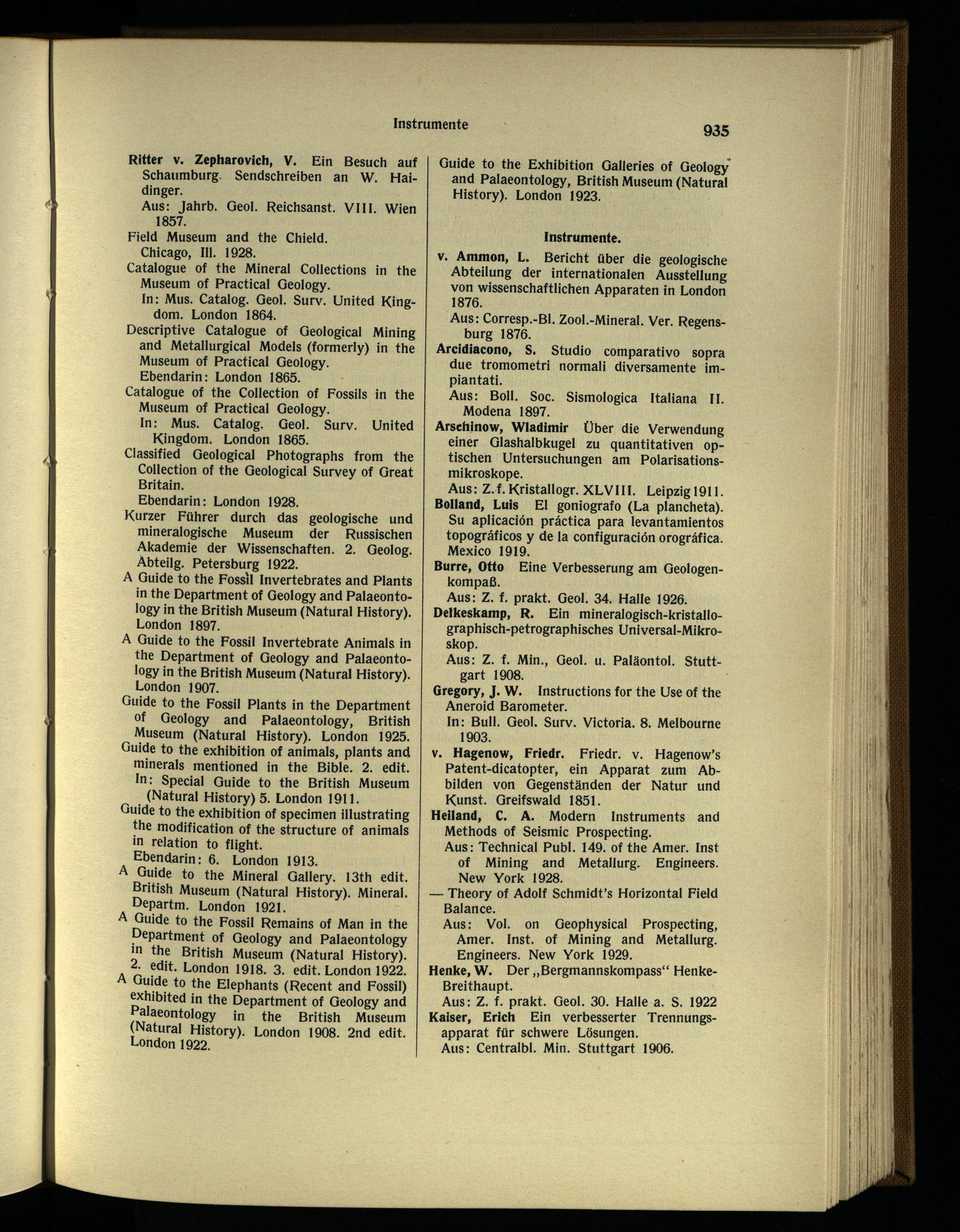 Kurzer Führer durch das geologische und mineralogische Museum der Russischen Akademie der Wissenschaften. 2. Geolog. Abteilg. Petersburg 1922.
