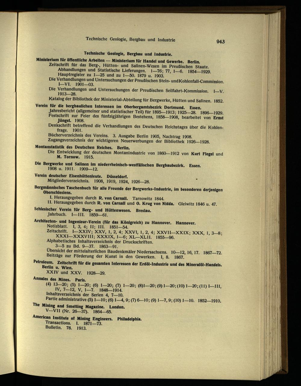 Zeitschrift für das Berg-, Hütten- und Salinen-Wesen im Preußischen Staate. Abhandlungen und Statistische Lieferungen. 1—76; 77, 1—6. 1854—1929. Hauptregister zu 1—25 und zu 1—50. 1879 u. 1903.