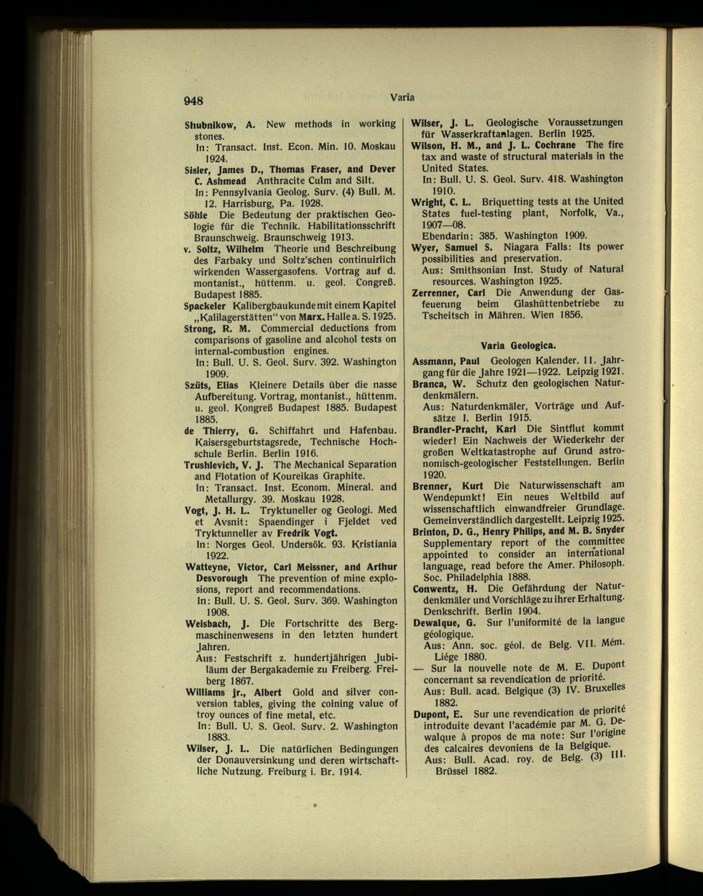 Assmann, Paul Geologen Kalender. 11. Jahrgang für die Jahre 1921—1922. Leipzig 1921. Branca, W. Schutz den geologischen Naturdenkmälern.