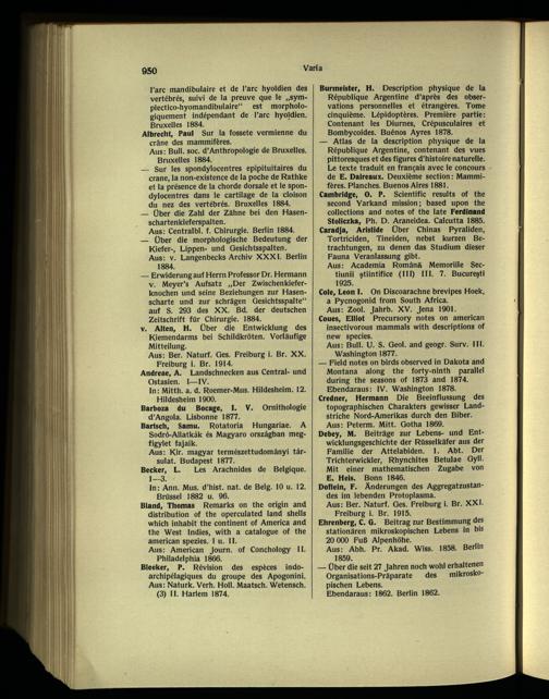 — Atlas de la description physique de la République Argentine, contenant des vues pittoresques et des figures d’histoire naturelle. Le texte traduit en français avec le concours de E. Daireaux. Deuxième section : Mammi fères . Planches. Buenos Aires 1881.