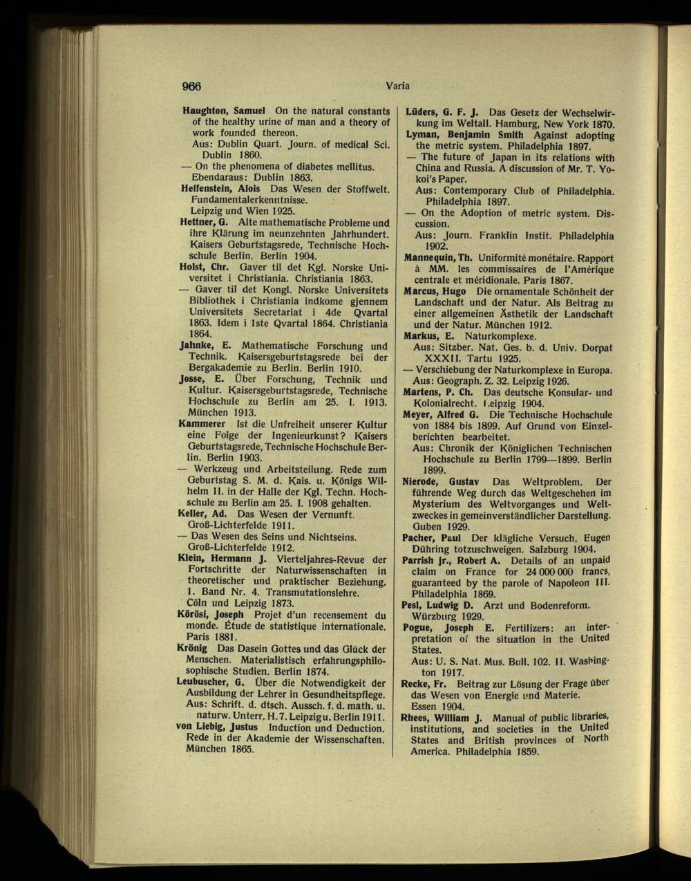 Lüders, G. F. J. Das Gesetz der Wechselwirkung im Weltall . Hamburg , New York 1870. Lyman , Benjamin Smith Against adopting the metric system. Philadelphia 1897.