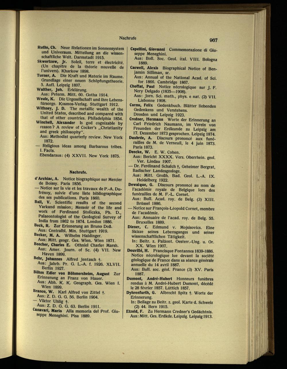 Aus: Mitt, geogr. Ges. Wien . Wien 1871. Beecher, Charles E. Othniel Charles Marsh. Aus: Amer. Journ. of Sc. (4) VII. New Haven 1899.