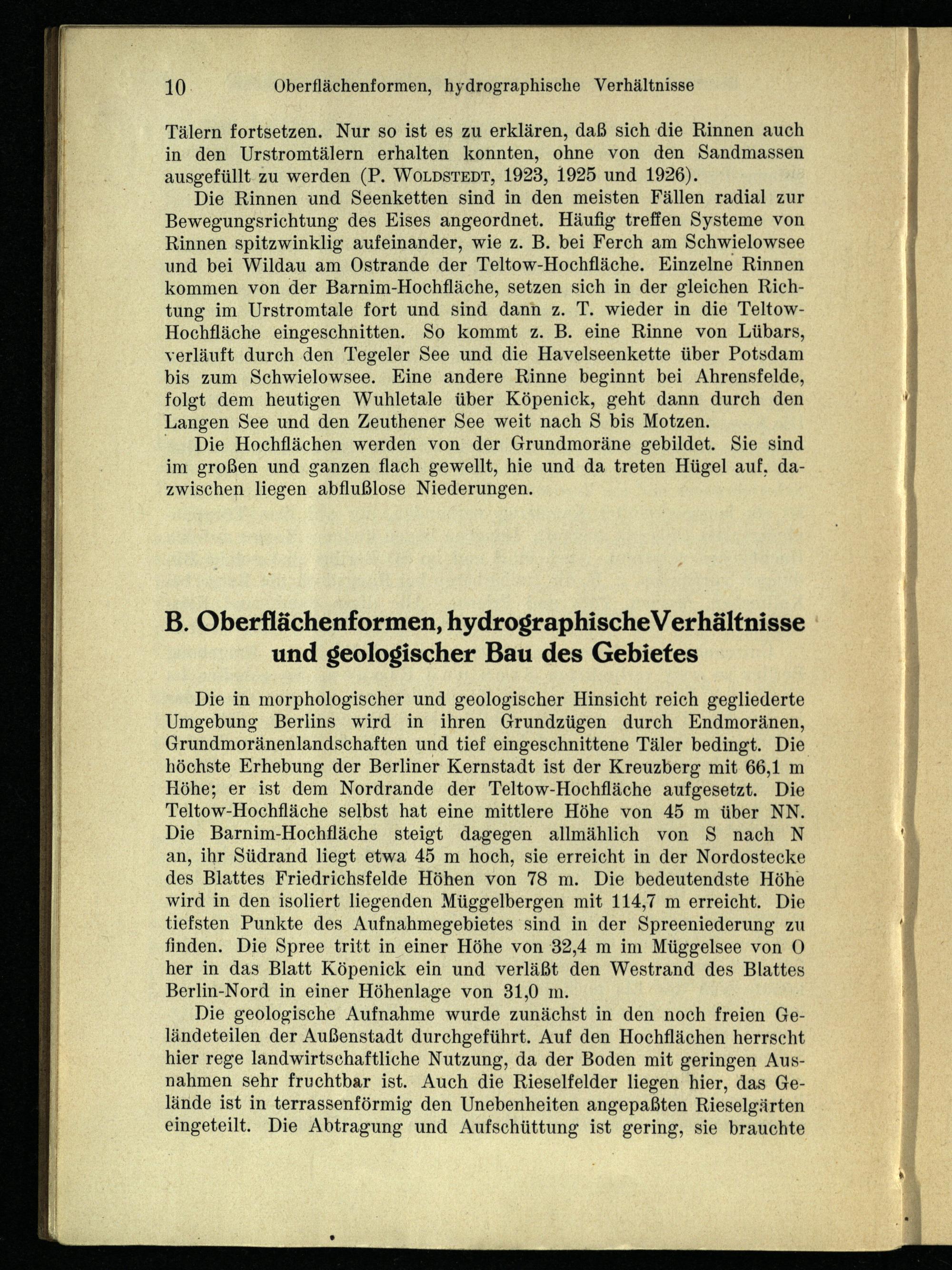 B. Oberflächenformen, hydrographische Verhältnisse' und geologischer Bau des Gebietes