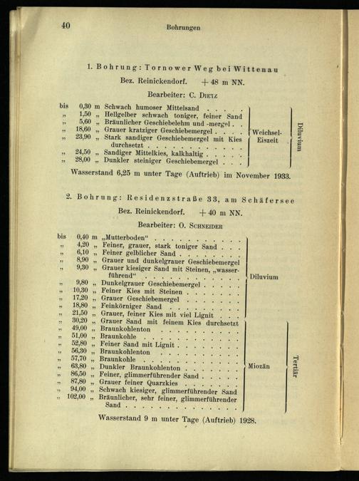 2. Bohrung: Residenzstraße 33, am Schäfersee Bez. Reinickendorf.+40 m NN. Bearbeiter: 0. SCHNEIDER