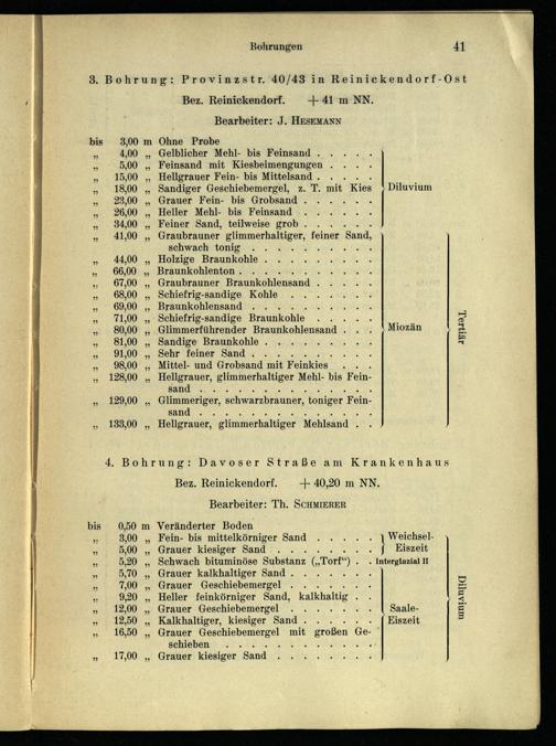 Grauer kiesiger Sand.. ‚‘. f Eiszeit Schwach bituminöse Substanz(„Torf“)-. Interglazial II Grauer kalkhaltiger Sand.: Grauer Geschiebemergel... Heller feinkörniger Sand, kalkhaltig. Grauer Geschiebemergel....„| SaaleKalkhaltiger, kiesiger Sand......(Eiszeit Grauer Geschiebemergel mit em Ge