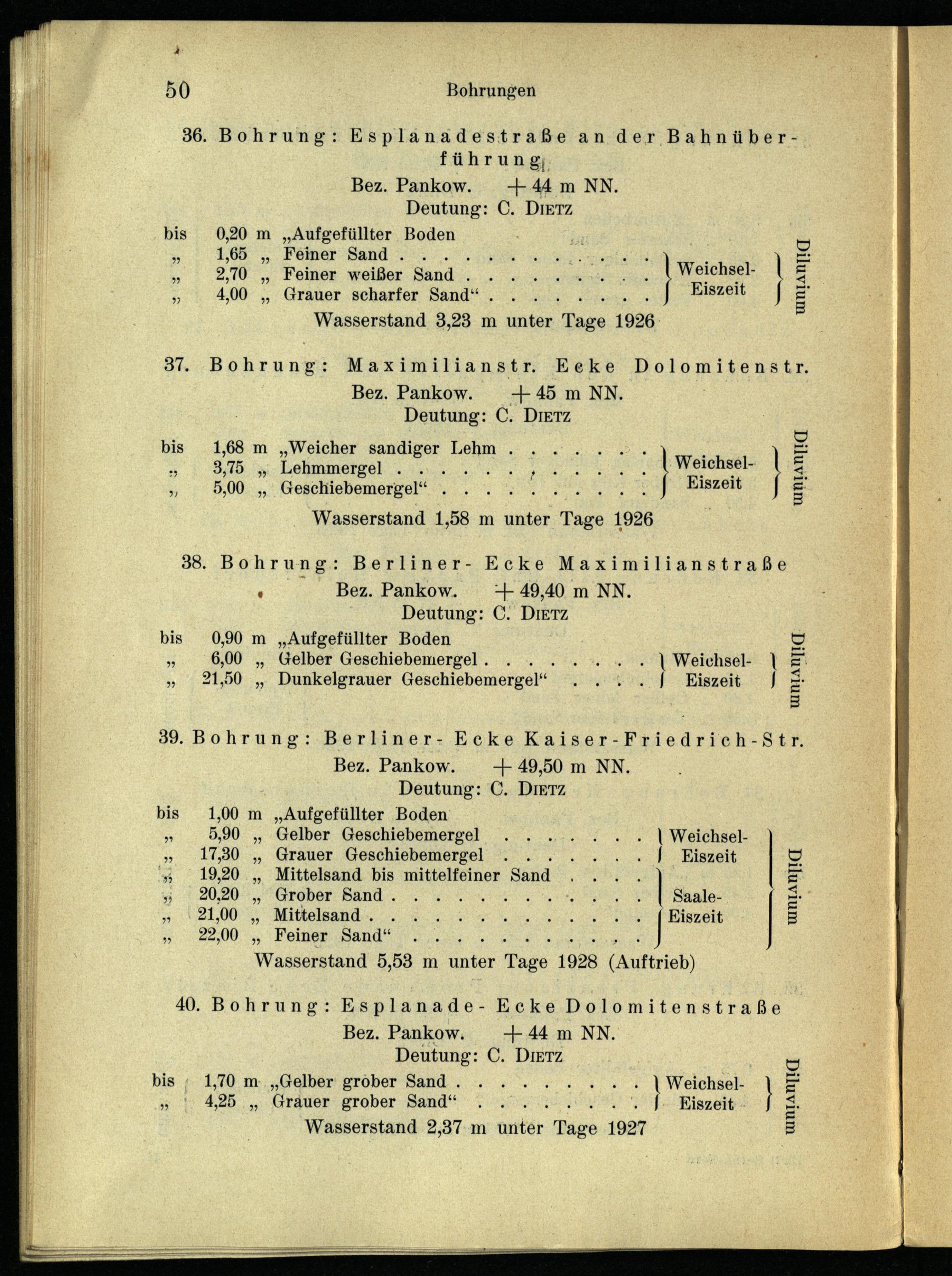40. Bohrung: Esplanade- Ecke Dolomitenstraße Bez. Pankow.+44 m NN. Deutung: C. DIETZ