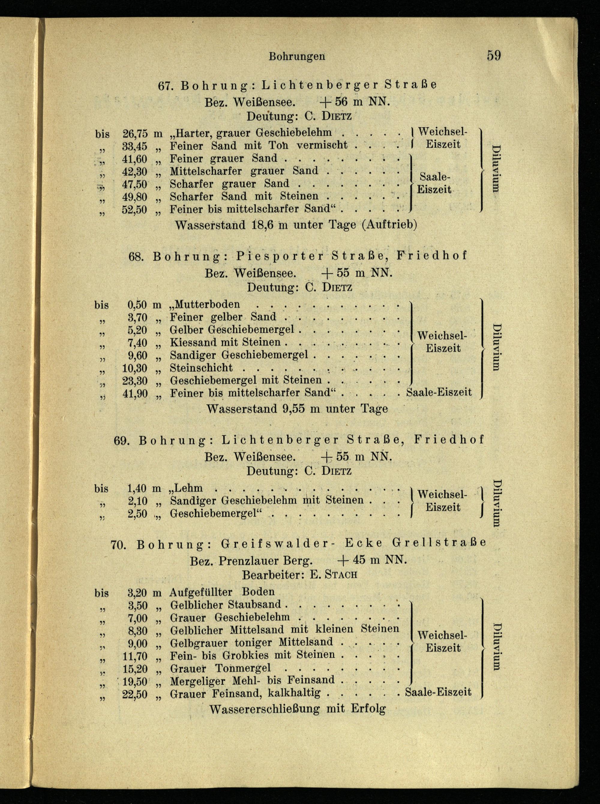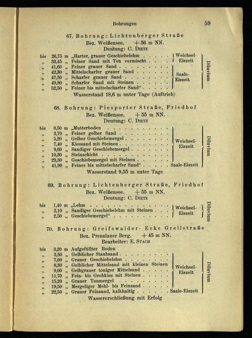 69. Bohrung: Lichtenberrer Straße, Friedhof Bez. Weißensee.+55 m NN. Deutung: C. DIETZ