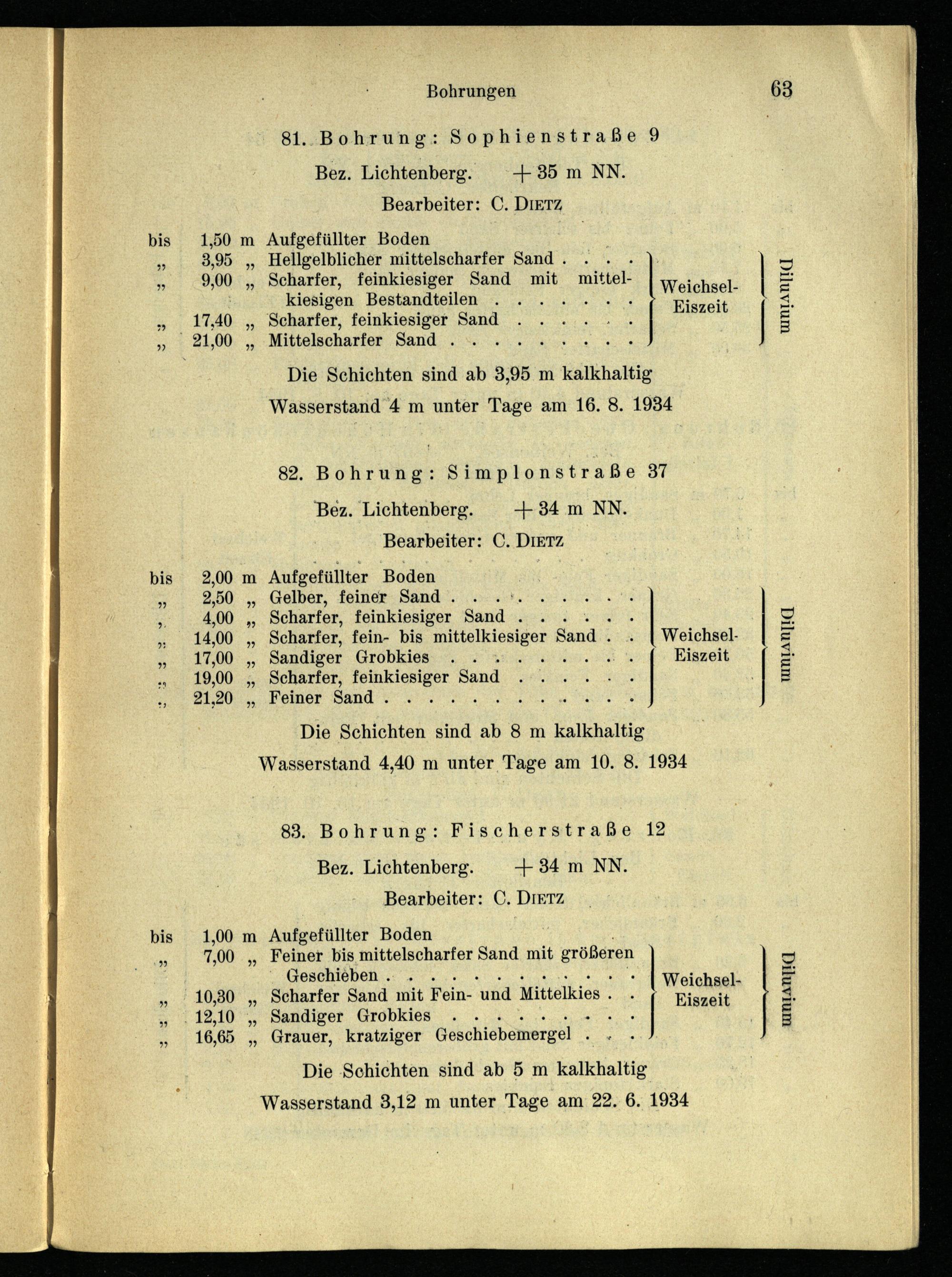 83. Bohrung: Fischerstraße 12 Bez. Lichtenberg.+34 m NN. Bearbeiter: C. DIETZ