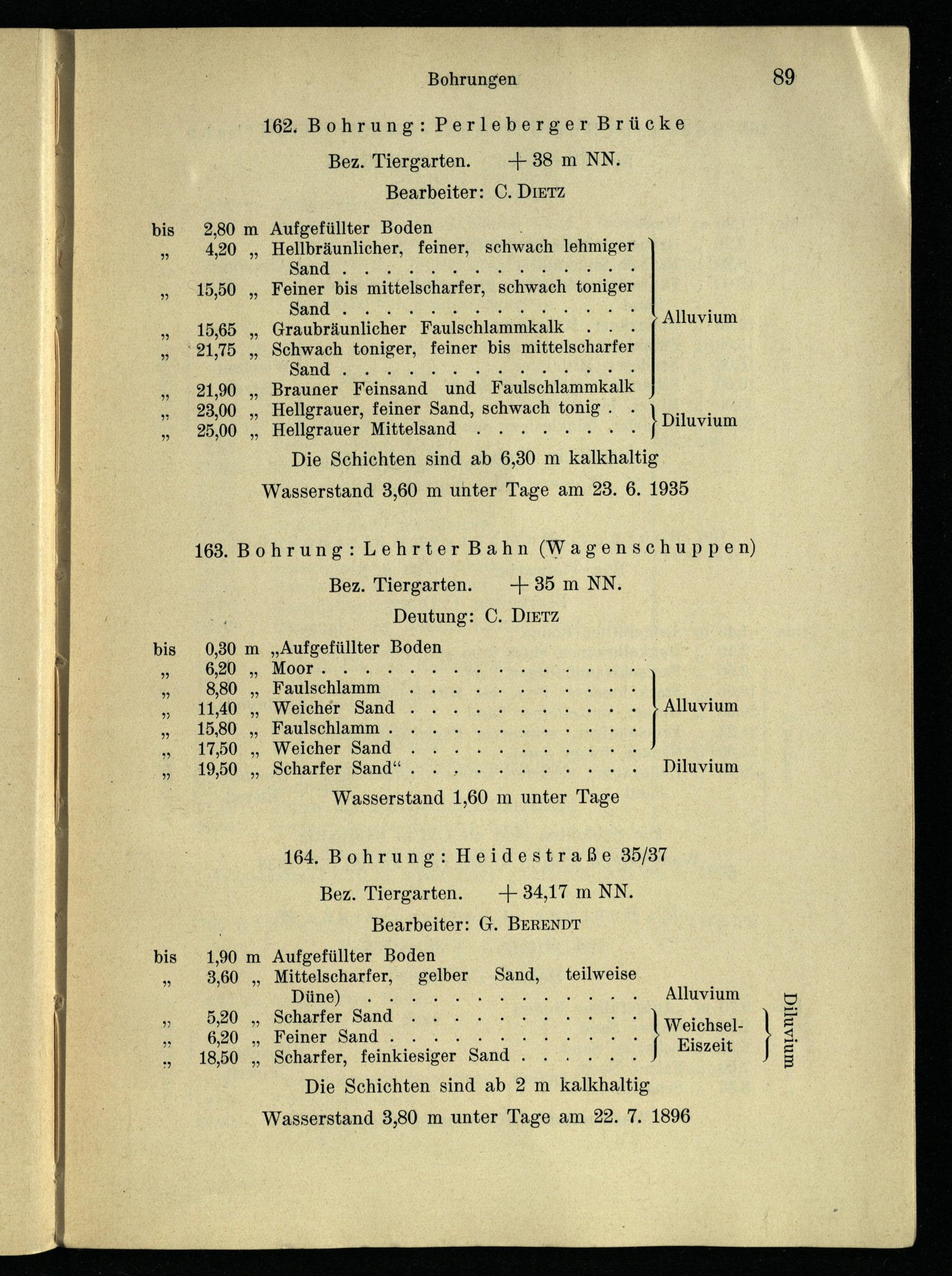 164. Bohrung: Heidestraße 35/37 Bez. Tiergarten.+ 34,17 m NN.