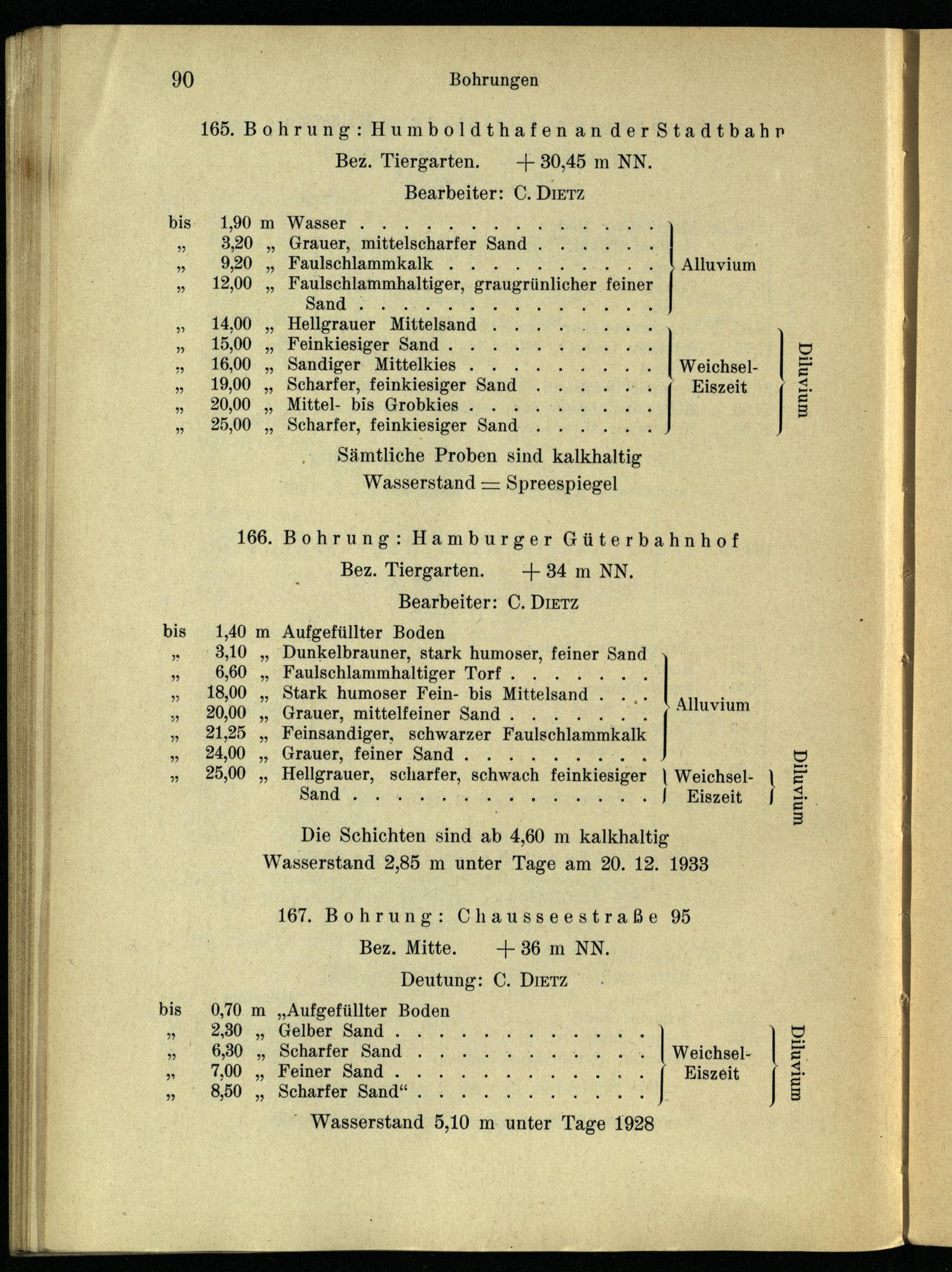 167. Bohrung: Chausseestraße 95 Bez. Mitte.+36 m NN. Deutung: C. DIETZ